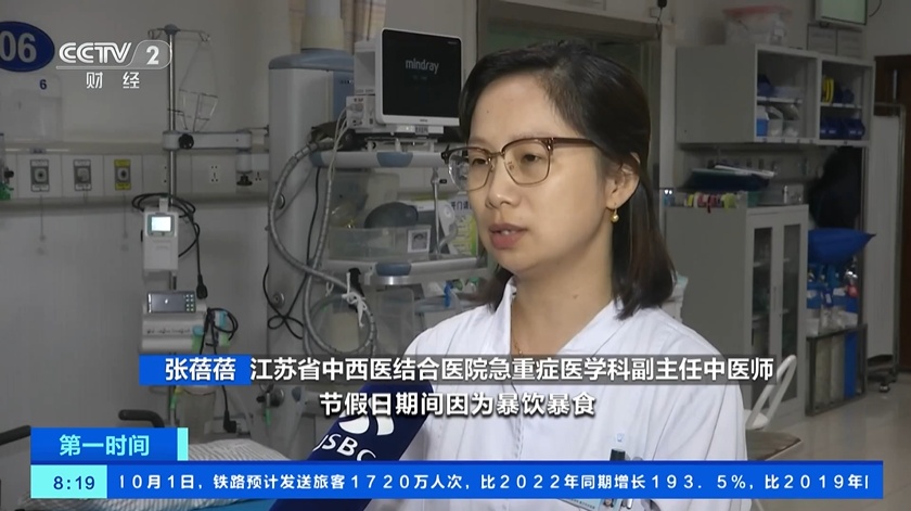 江苏省中西医结合医院急重症医学科副主任中医师张蓓蓓表示,节假日期间因为暴饮暴食,急性胰腺炎的发病率比较高,特别是重度胰腺炎,属于高风险的疾病,很容易引起多脏器功能衰竭。