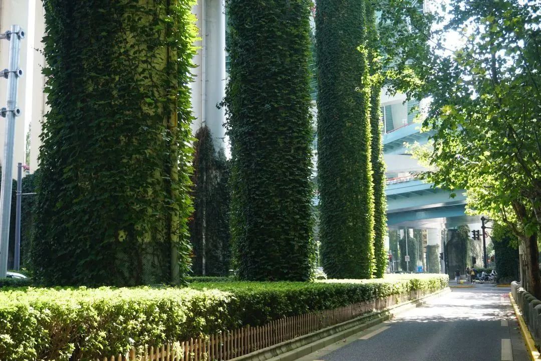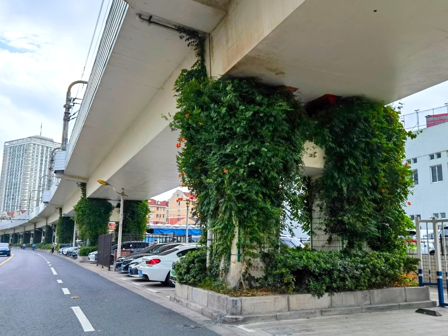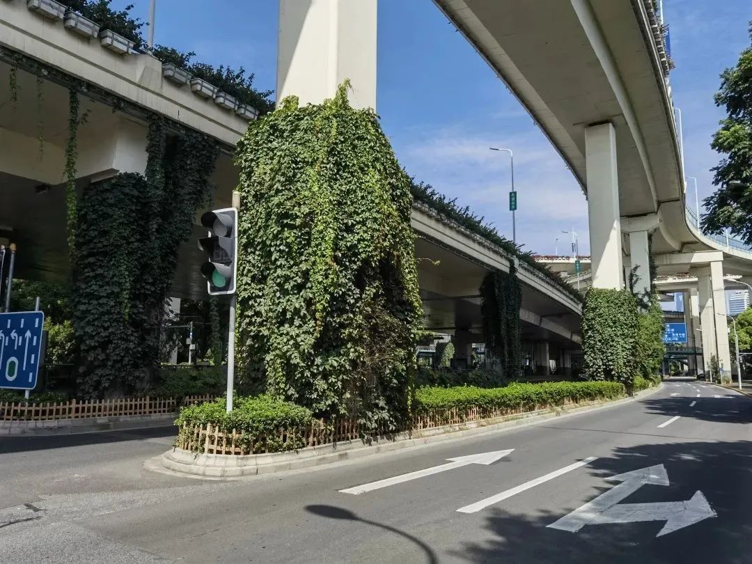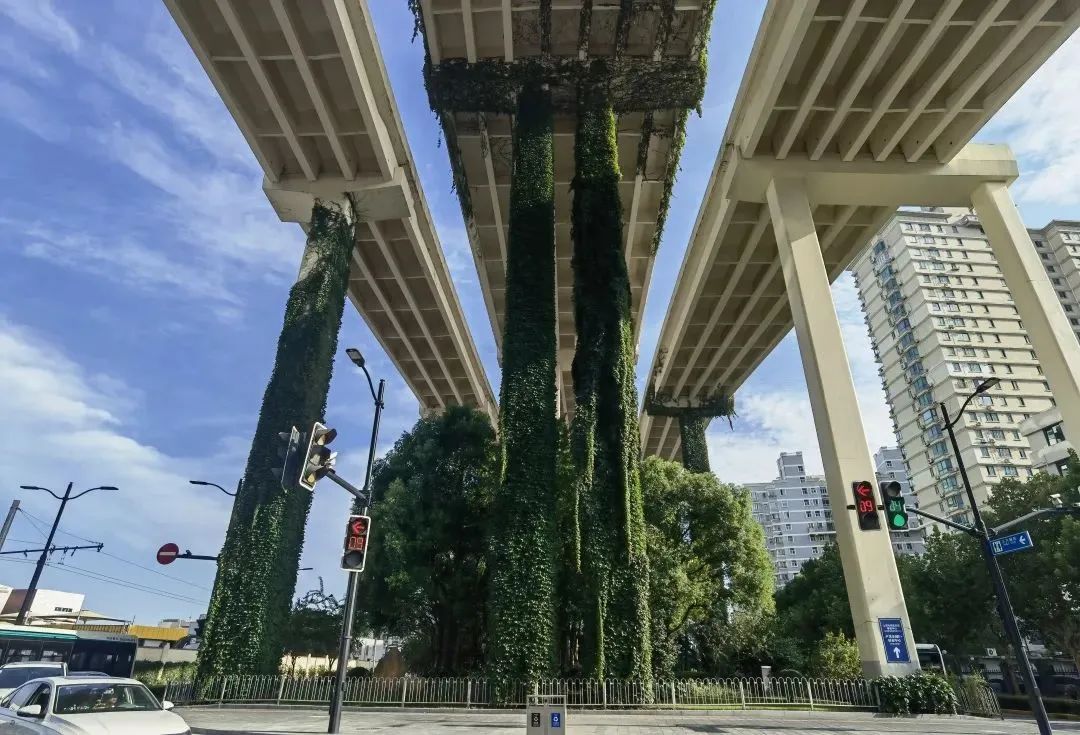 市绿化市容局介绍,行驶在高架桥,或者一些轨交桥和过街天桥下,你会发现灰色的钢筋混凝土桥柱上披着绿色的外衣。这件外衣,就是桥柱绿化。一起去看看这些别样风景线吧!↓