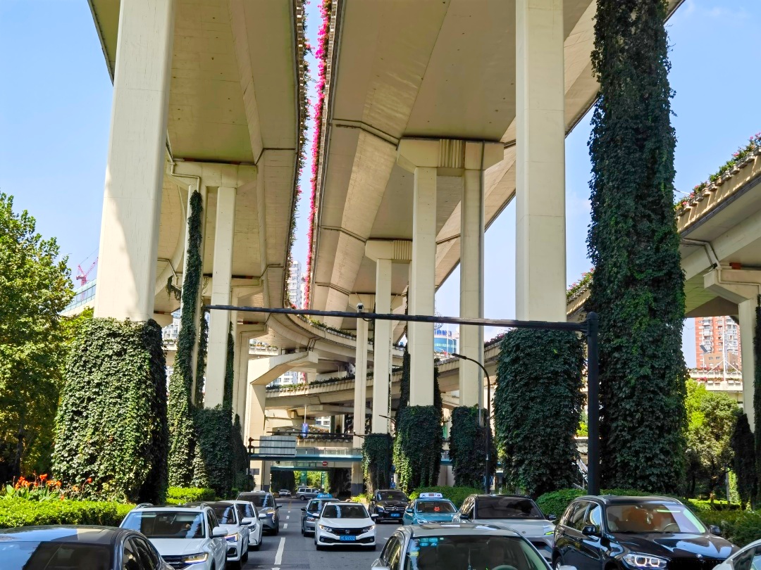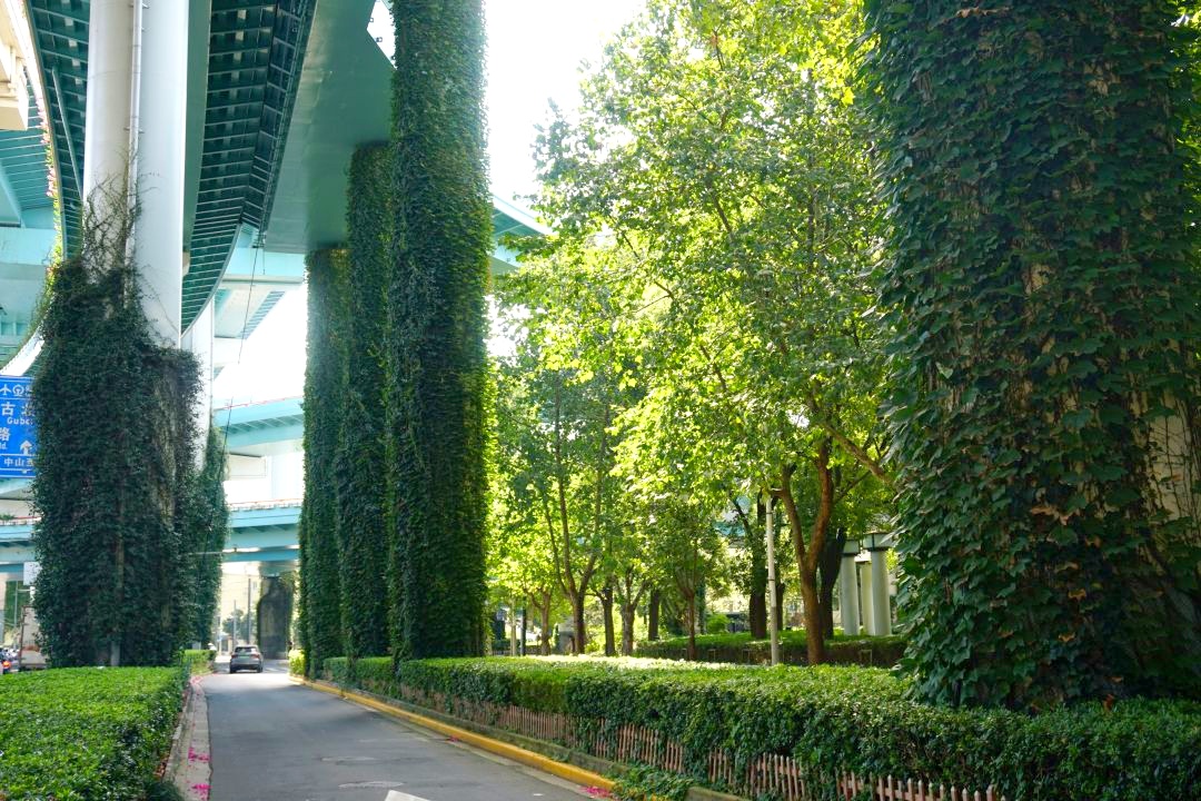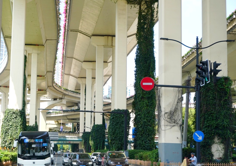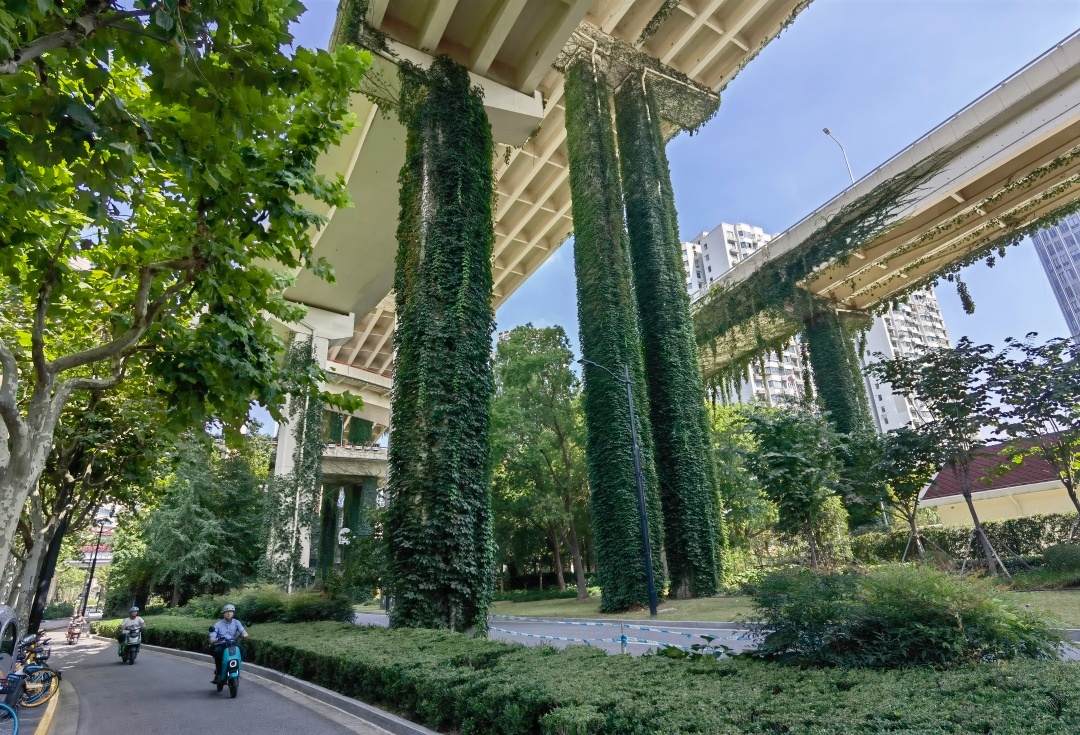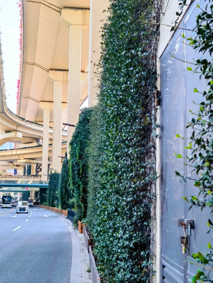 市绿化市容局介绍,行驶在高架桥,或者一些轨交桥和过街天桥下,你会发现灰色的钢筋混凝土桥柱上披着绿色的外衣。这件外衣,就是桥柱绿化。一起去看看这些别样风景线吧!↓