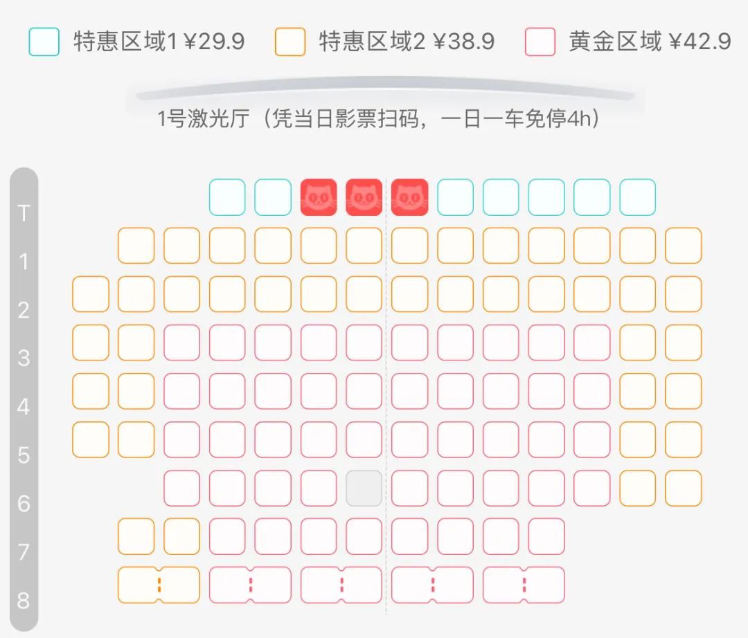 但值得注意的是,这家影院的线上选票系统显示,1号激光厅除前三排座位以及两边靠过道零散座位为特惠区外,其余座位全部属于“黄金区”。这家影院的工作人员表示,“分区售票”是几个月前开始调整的。