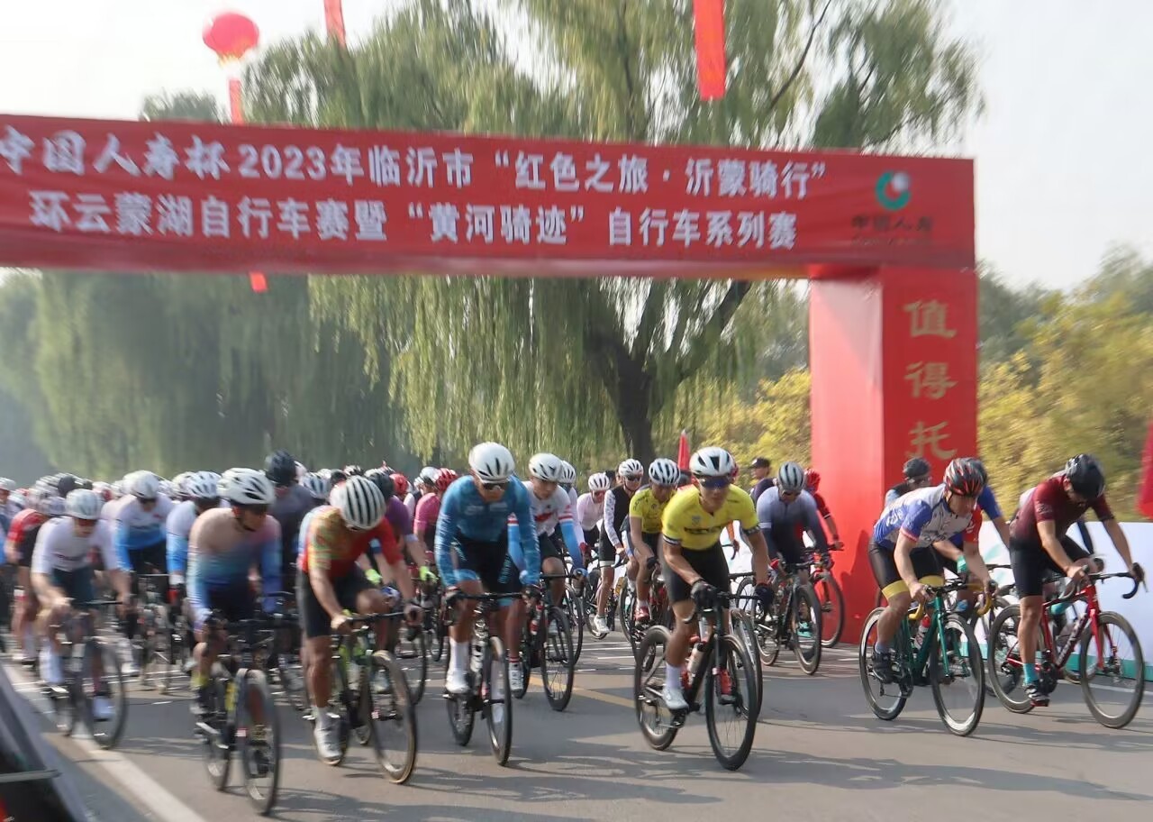 10月14日,临沂市蒙阴县,以“弘扬沂蒙精神,凝聚筑梦力量,骑行蒙山沂水,共享红色之旅,黄河骑迹聚蒙阴,济临连心向未来”为主题的中国人寿杯2023年临沂市“红色之旅·沂蒙骑行”环云蒙湖自行车赛暨“黄河骑迹”自行车系列赛在开赛。来自济南、临沂等地的骑行爱好者参加了男子组、女子组、大众组三个组别的比赛。(大众日报客户端记者 卢鹏 通讯员 公茂栋 姜永健 报道)