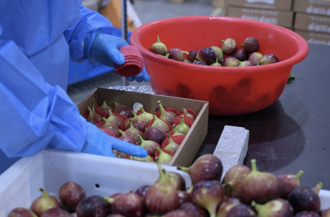 当天上午8点,在横沙乡青青无花果园内,工人们有条不紊地进行着无花果的采摘,一个个拳头大小、形似“小笼包”的无花果经过分拣、包装后,装车发往香港。