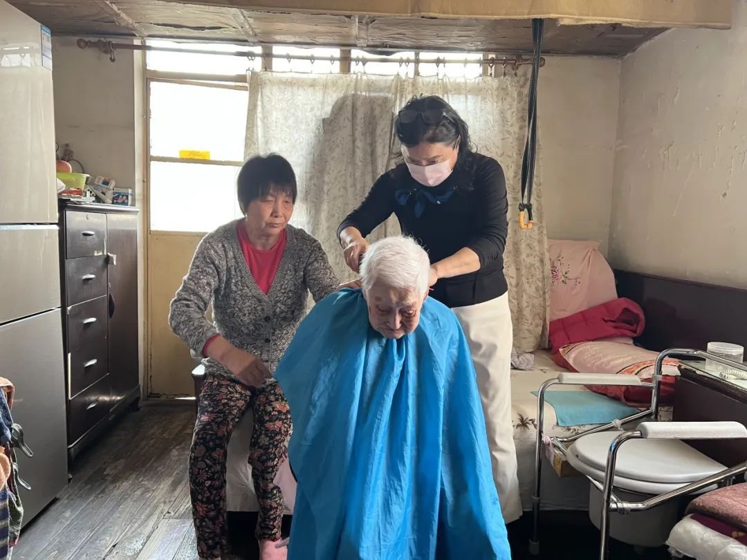 记者了解到,最近,专业理发师免费上门为包括陈阿婆、曲阿婆两位百岁寿星在内的首批15位老人理发。根据不同头型,理发师使用随身携带的不同工具,为老人打理出利落的发型。九十多岁的居民黄惠珍对上门理发的服务非常满意,因患病而腿脚不便的她,平时难得出门,进理发店的次数也很少。她说,感谢这次活动,为自己带来了便利。