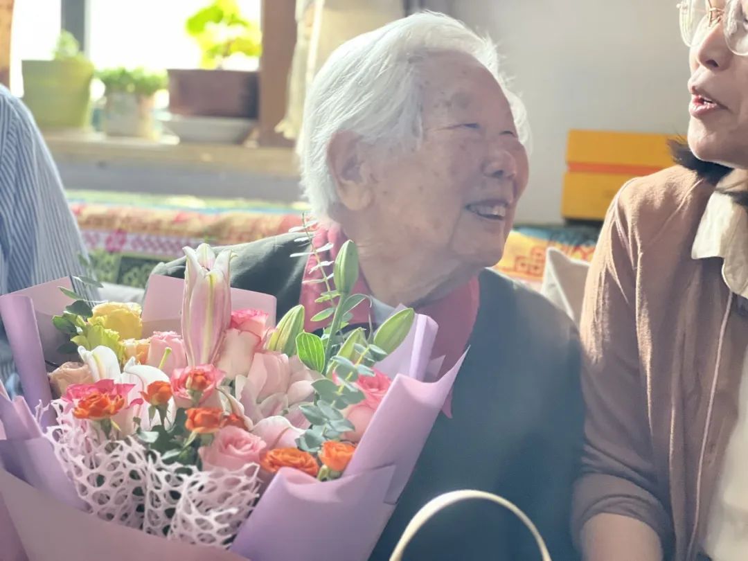 当天,陈阿婆的茶几上摆满了生日礼物。大家围坐一圈,听老人分享自己的生活日常,还交流起长寿秘诀。