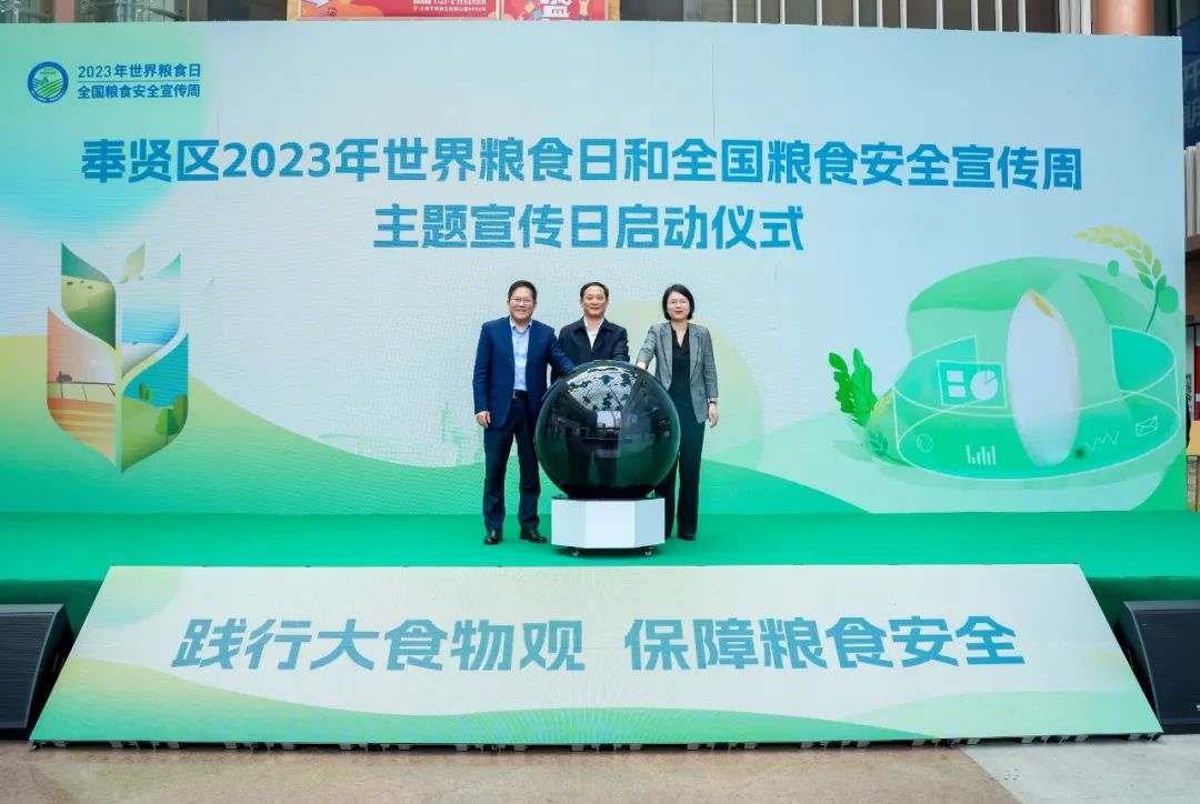 活动还举行了授牌(旗)仪式,进一步完善粮食安全宣传教育长效机制,其中上海奉贤区粮油购销有限公司作为“奉贤区粮食安全宣传教育基地”,资福村、江海一居、庄行学校作为“奉贤区粮食安全宣传小分队”,持续推动粮食安全理念进社区、进学校、进机关、进企业。