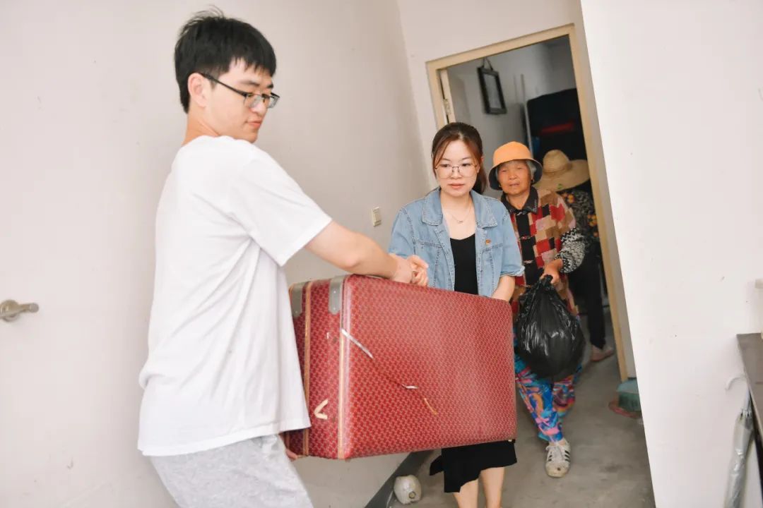 老街居民普遍老龄化程度较高,无法独自外搬过渡。中学路19号的罗奶奶和周老伯就面临这一问题,得知能住进新房,老人们十分高兴,但是由于腿脚不便,子女又不在身边,无法独立完成搬家。了解到这一情况,指挥部立即动员党员干部帮助他们迁往新家。