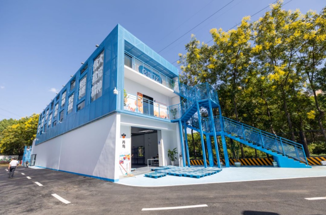 错落分布的40多座集装箱“小屋”,构成了21组功能各异的服务空间:阅读角、换电站、休息间、小卖部、医务室,各种便民设施一应俱全。园内还有10元就能吃到饱的社区食堂、解决临时住宿的胶囊公寓、室外篮球场,全方位满足新就业群体“医食驻行”上的需求。