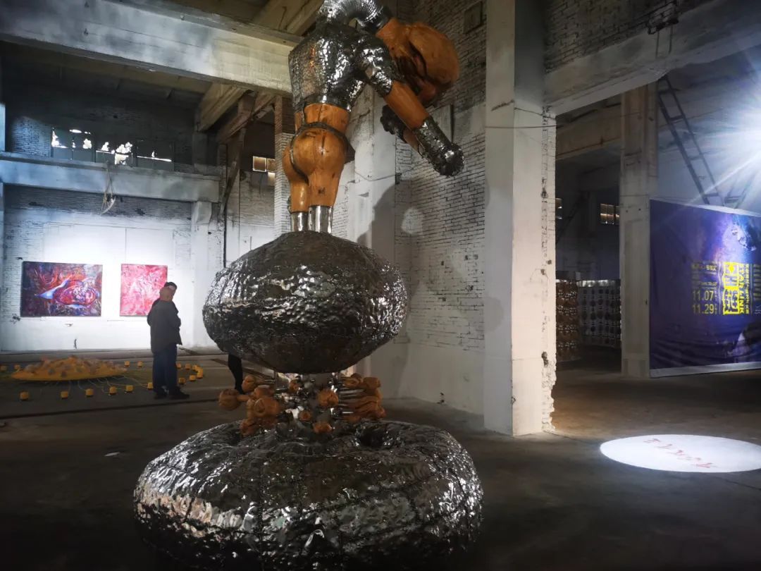 11月7日,两名四川当代艺术家何俊和耍惹石主的双个展将众多当代艺术爱好者吸引到了松江区袜子新弄创意园32号31幢的厂房里,展览以互动装置、新媒体、巨幅绘画、摄影等形式,多维度展现了艺术家丰富多样的想象力。
