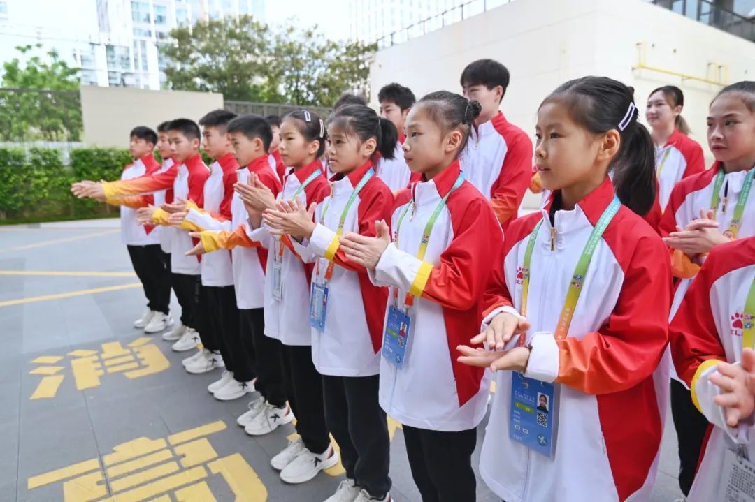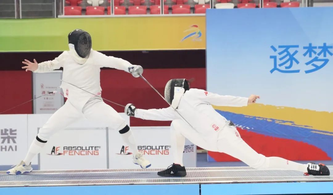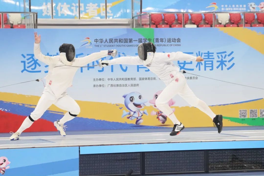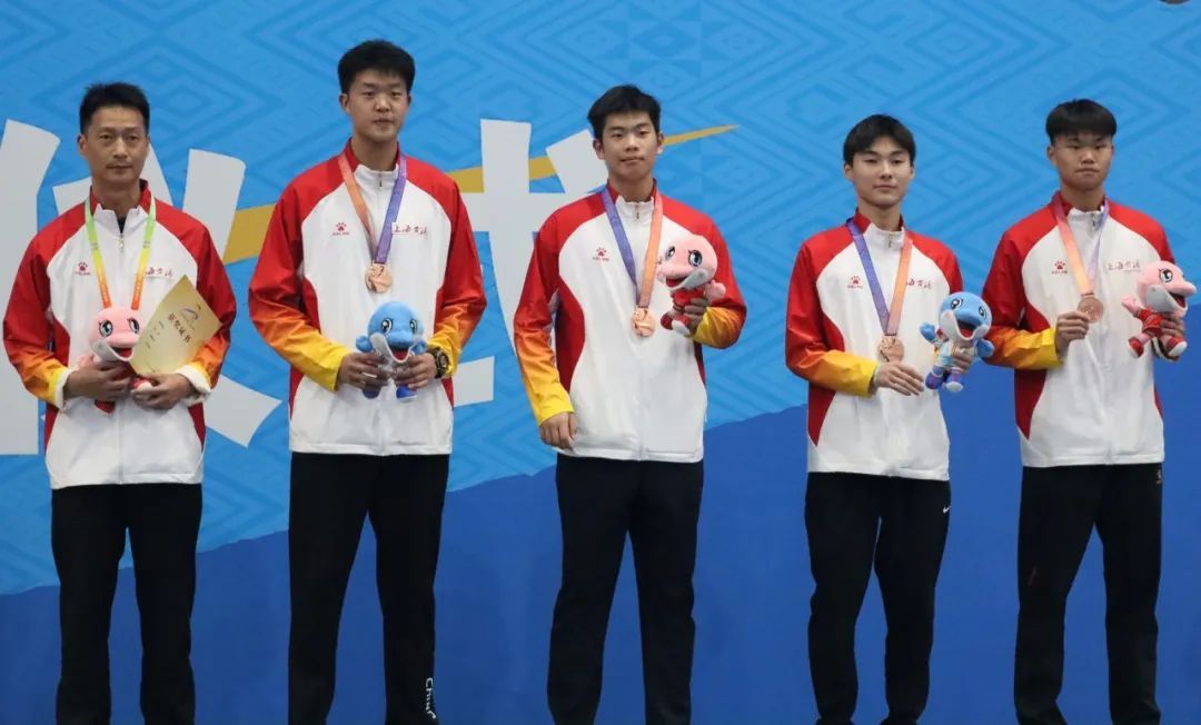 在击剑赛场,上海市黄浦区队黄宇轩、吕月涵、张秦瑞、周浩宇在男子重剑团体铜牌赛中,以45比35击败了北京市朝阳区队,获得该项目铜牌。