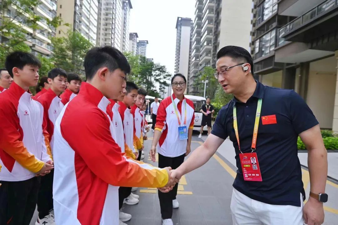 11月11日,第一届全国学生(青年)运动会进入开幕后的第六个比赛日。今日公开组共产生18个小项的金牌。在羽毛球赛场,上海市杨浦区队获得女子双打金牌。另外,上海市代表团延续了攀岩项目的优势,上海市杨浦区队夺得男子两项全能金牌。上海市黄浦区队获得击剑男子重剑团体铜牌;上海市杨浦区队获得体操女子甲组个人全能铜牌。 11日上午,市体育局党组副书记、副局长,黄浦区代表团副团长陆檩;市体育局副局长、黄浦区代表团副团长许琦;市体育局副局长、杨浦区代表团副团长罗文桦赴青运村看望运动员、教练员、工作人员和赴桂上海新闻工作者。 进入青运村,陆檩一行首先看望了上海体操队运动员、教练员和工作人员。陆檩对体操队所取得的成绩表示祝贺,希望大家以学青会为起点,顽强拼搏、赛出水平,为今后更上一个台阶打下坚实基础。 罗文桦对本次学青会取得的成绩表示肯定,勉励大家坚定信心、接续奋斗,朝着心中梦想不懈努力,取得更好成绩。 随后,陆檩与赴桂报道媒体记者亲切交谈,希望通过新闻报道展现上海运动员风采,弘扬体育精神,传递正能量。 最后,陆檩一行参观了运动员公寓、志愿者之家和反兴奋剂教育拓展基地等青运村设施。
