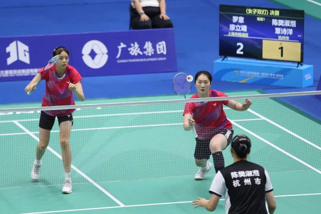 在羽毛球女子双打决赛中,上海市杨浦区队的罗意、廖立曦组合以2比0的战胜对手,为上海市代表团摘得一枚金牌。廖立曦表示,和罗意搭档后,两人积极磨合:“我比较擅长前场组织,罗意她会帮我去完成后场得分的任务。”两人配合默契,直落两局赢下比赛。罗意曾参加过2019年的二青会,再次站上全国青年最高级别赛场的冠军领奖台,她感到又紧张又激动,最终赢下双打冠军也让她弥补了四年前团体赛第七的遗憾。