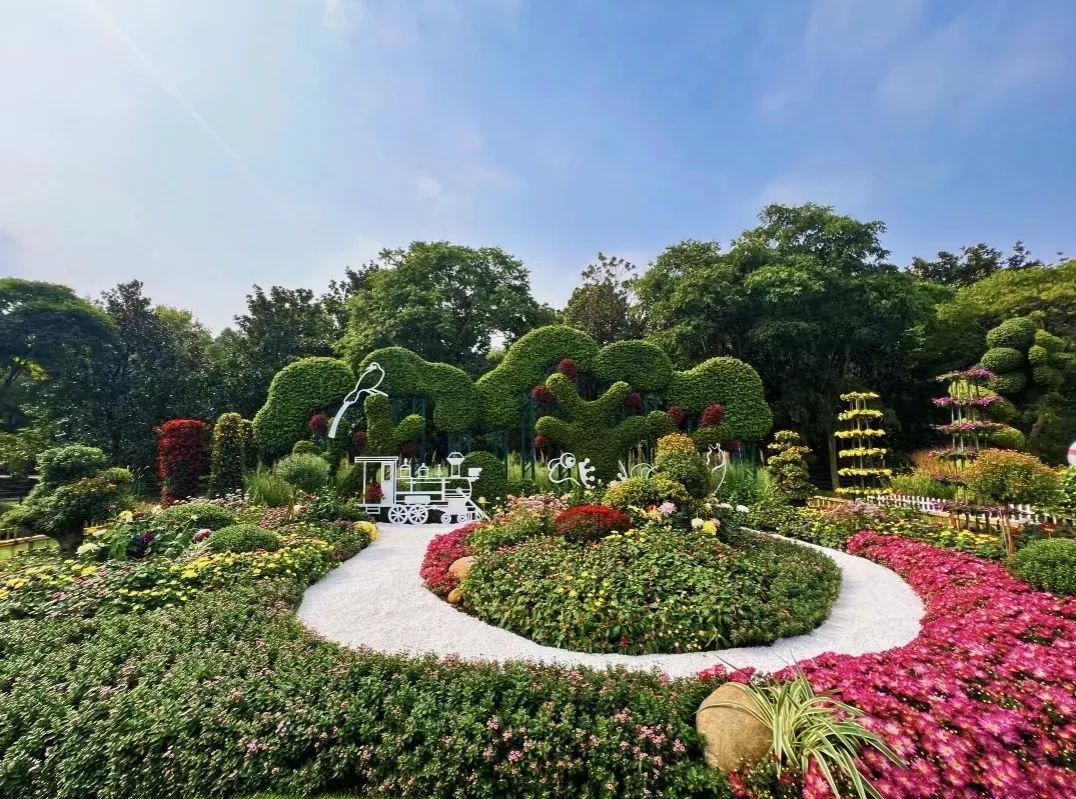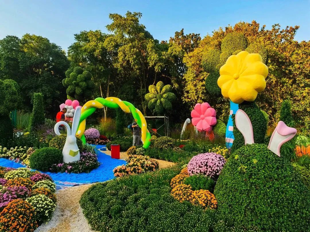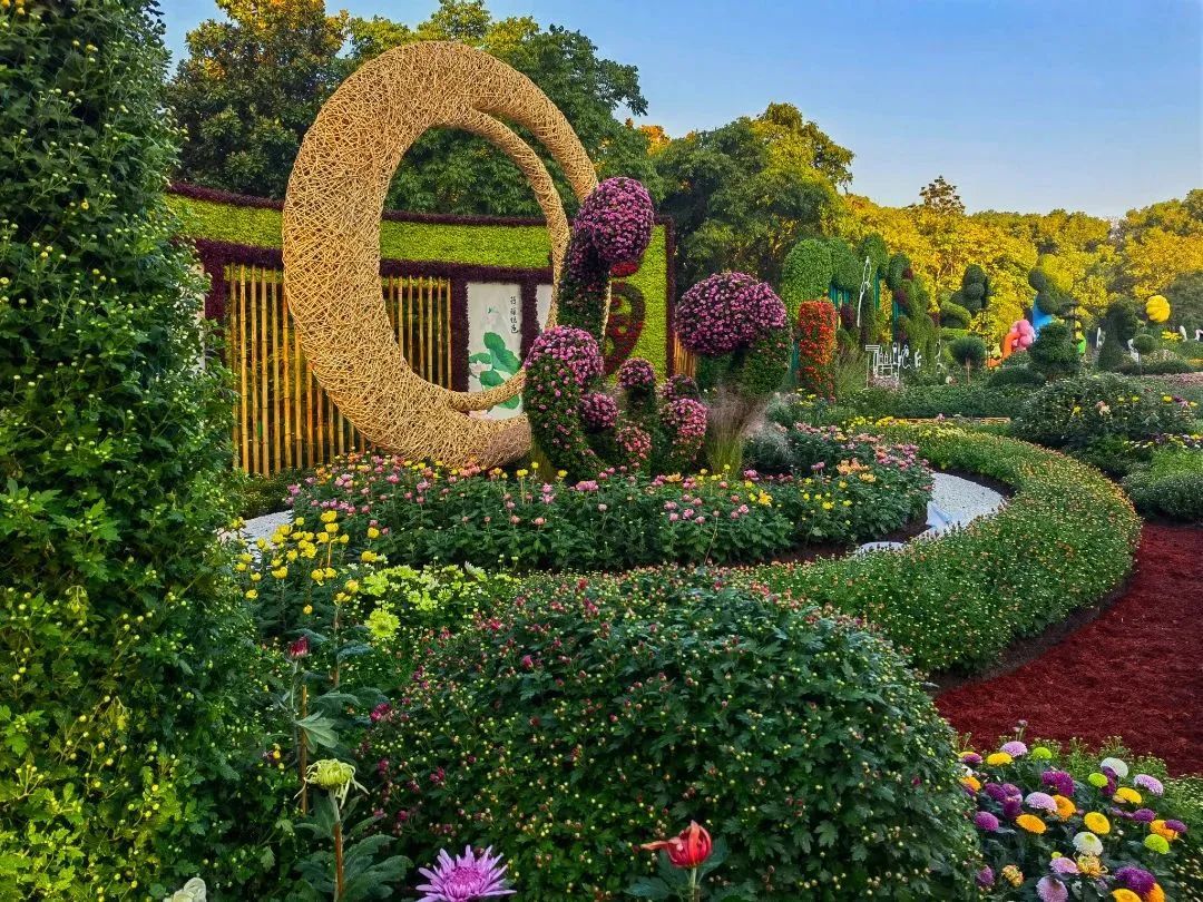 2023年上海菊花展正逐步进入最佳观赏期。主题景点展区内的八组大型户外菊花立体景点前,每天都有许多游客前来观赏打卡。