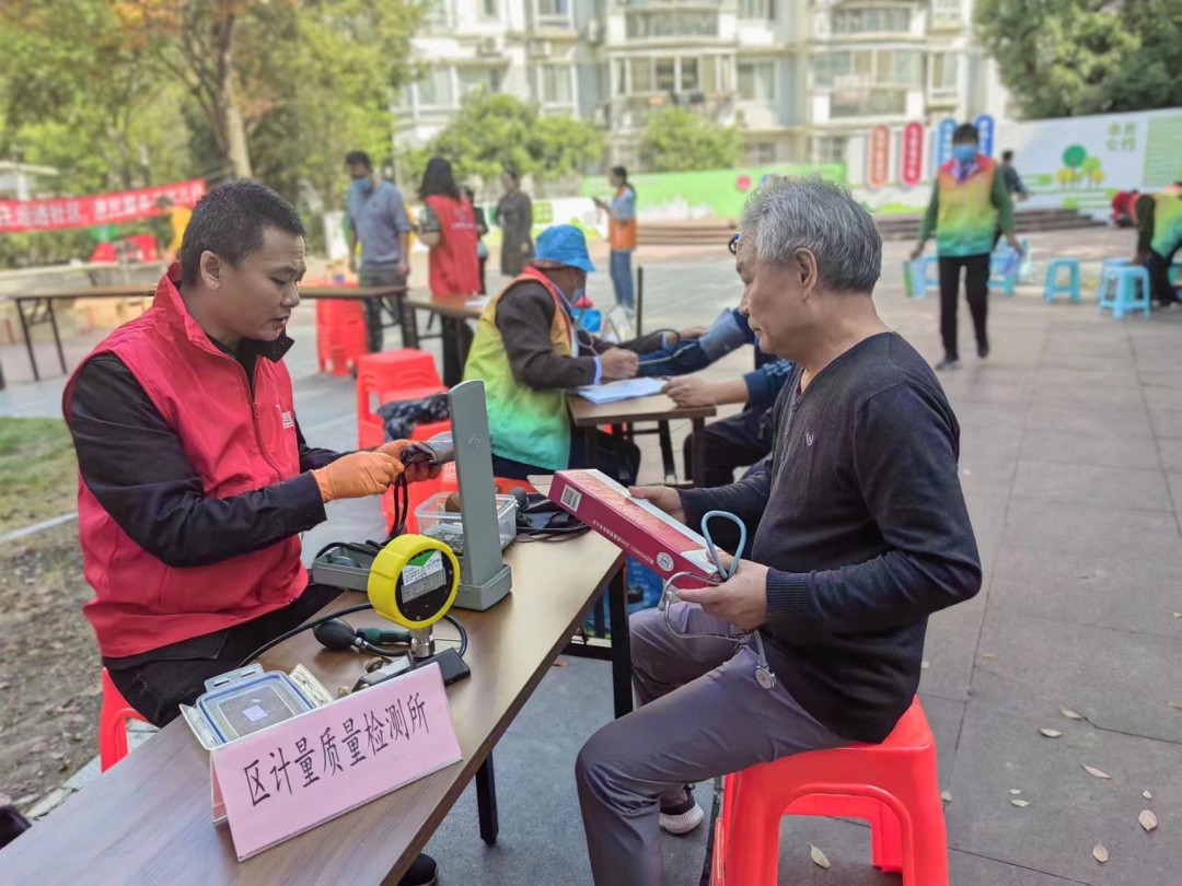 这天一早,居民张老伯就手拿一台老式血压计,早早地来到区计量质量检测所的服务摊位上,“现在这水银血压计坏了,找地方修还真挺难,听说今天有人能修,我特地带上了。”在金汇居民区结对共建单位金山区计量质量检测所党支部志愿者的细心调试下,张老伯的血压计很快恢复了“活力”。