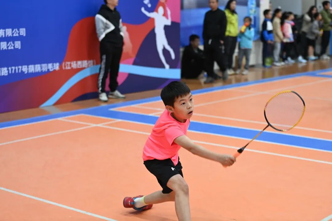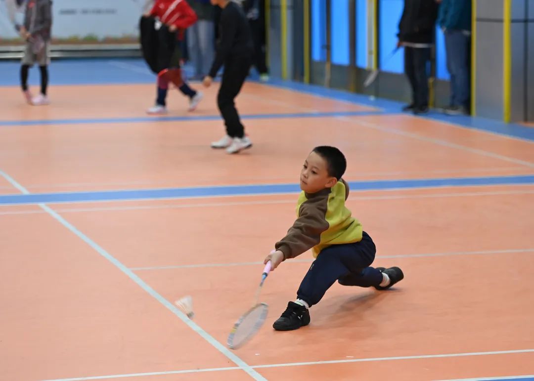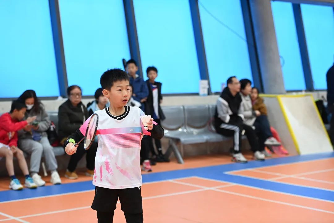 羽毛球小将们年纪虽然不大,但劈吊、扣杀等技术动作精准娴熟,场上比分你追我赶,精彩纷呈。