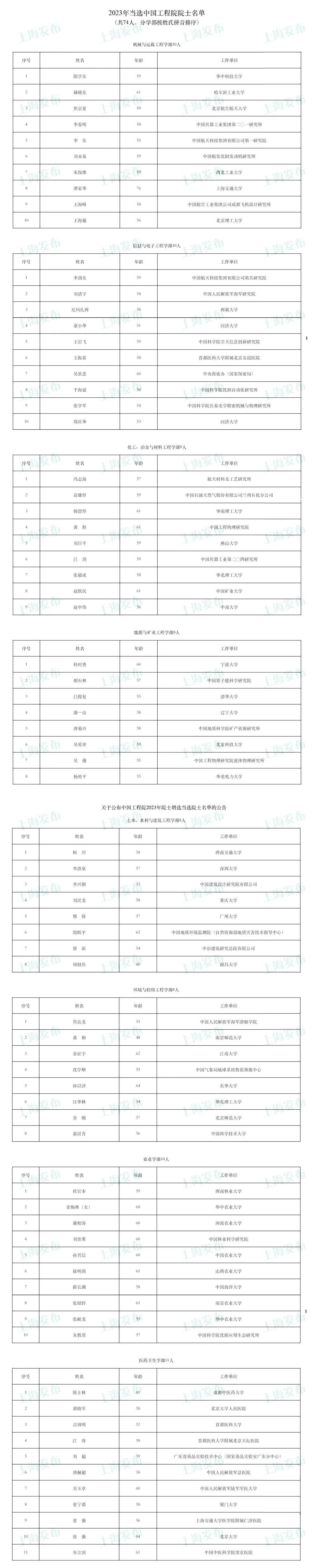 中国工程院网站发布2023年院士增选结果,共选举产生74位中国工程院院士。