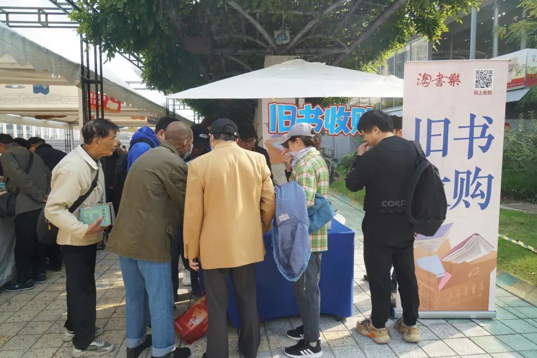 市集现场,“旧书收购摊位”也是人气火爆。“旧书收购摊位”的设置,是为了更好服务市民,持续秉持“循环、低碳、绿色、环保”的理念,为读者提供专业、便利的旧书收购咨询服务。读者既可将家中积攒的旧书带到现场,当场由上海图书公司专业人员进行估价收购,也可预约上门收购,让自家书房进行一次“新陈代谢”。