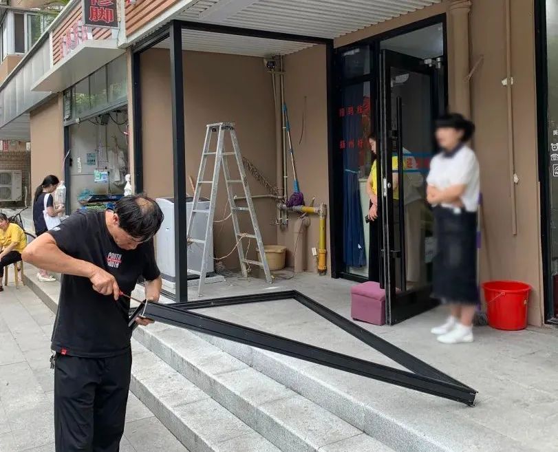执法队队员向店铺老板说明了违章建筑的利害关系,并对其进行了普法宣传,店铺老板不仅认识到了自己的错误,还详细了解了违章建筑可能造成的危害,他立刻让店铺的工作人员对多出来的玻璃房进行拆除。在执法队队员的见证下,不到半个小时,违章玻璃房便被拆除。借助此次整治契机,执法队队员就违章搭建问题向周边商户进行了详细普法,起到了良好的宣传教育作用。