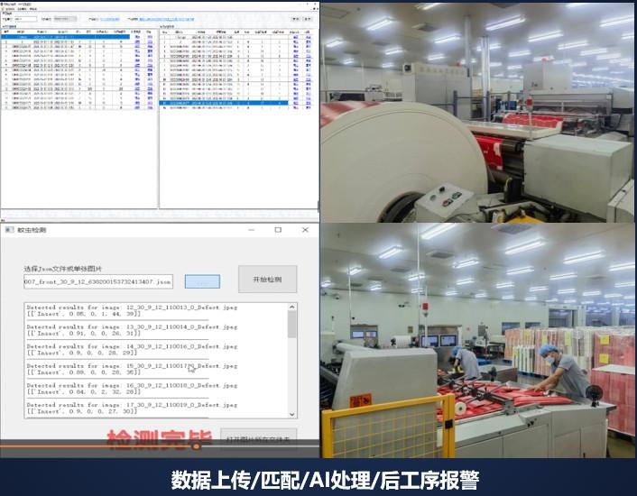 为避免产品在高速印刷中受油墨脏点、套印不良、颜色偏差、字符缺失、及蚊虫异物等缺陷而影响产品质量和食安问题,公司在印刷机上安装高速 CCD 专业相机和配套的专业图像监控、编辑、报警系统,并结合自主研发的AI图像识别算法和非结构化数据采集软件,对生产中的非预先编辑类图片进行再次分析、判断,最后输出缺陷图片的定位和缺陷信息到数据库,并通过设备互联互通将数据实时传送到下工序,待下工序复卷放料或模切生产时,读取产品缺陷位置信息,进行剔除及提示报警。有了该项智能监控技术,产品缺陷和食品安全隐患能被准确而有效地识别,在大大减轻一线员工和质量人员产品监控压力的同时,也明显降低公司质量客诉率。