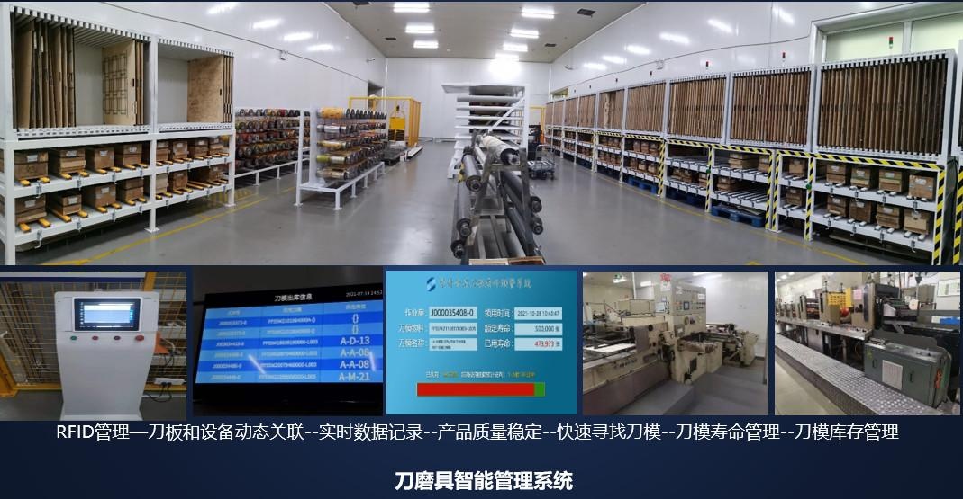 生产的刀模实现自动化管理。自主开发了刀模管理平台,采用RIFD 技术进行管理,并设定刀模寿命,比较刀具在设备上运转时的信息,统计、折算当前刀模具寿命,并根据标准值予以报警提示,实现预防性管理,避免因刀模突发状况而影响生产,也大大减少刀模具库存,管理得到优化。