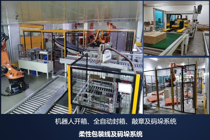 成品混线输送、柔性装箱及码垛系统
