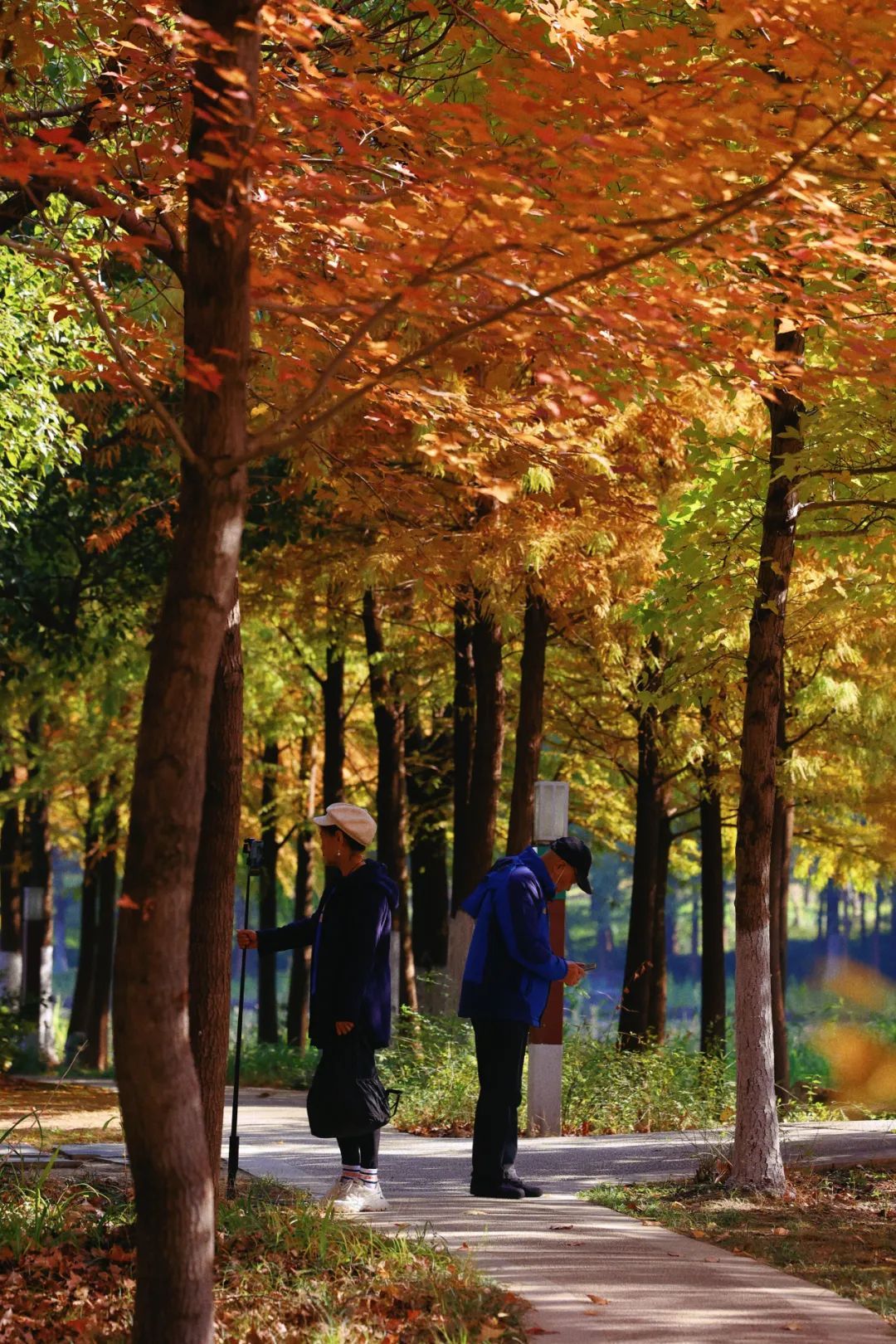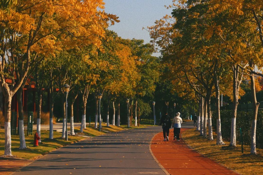踩着满地金黄的落叶