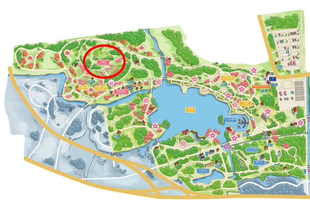 三号门入园→飘香路→彩叶路→秋景园