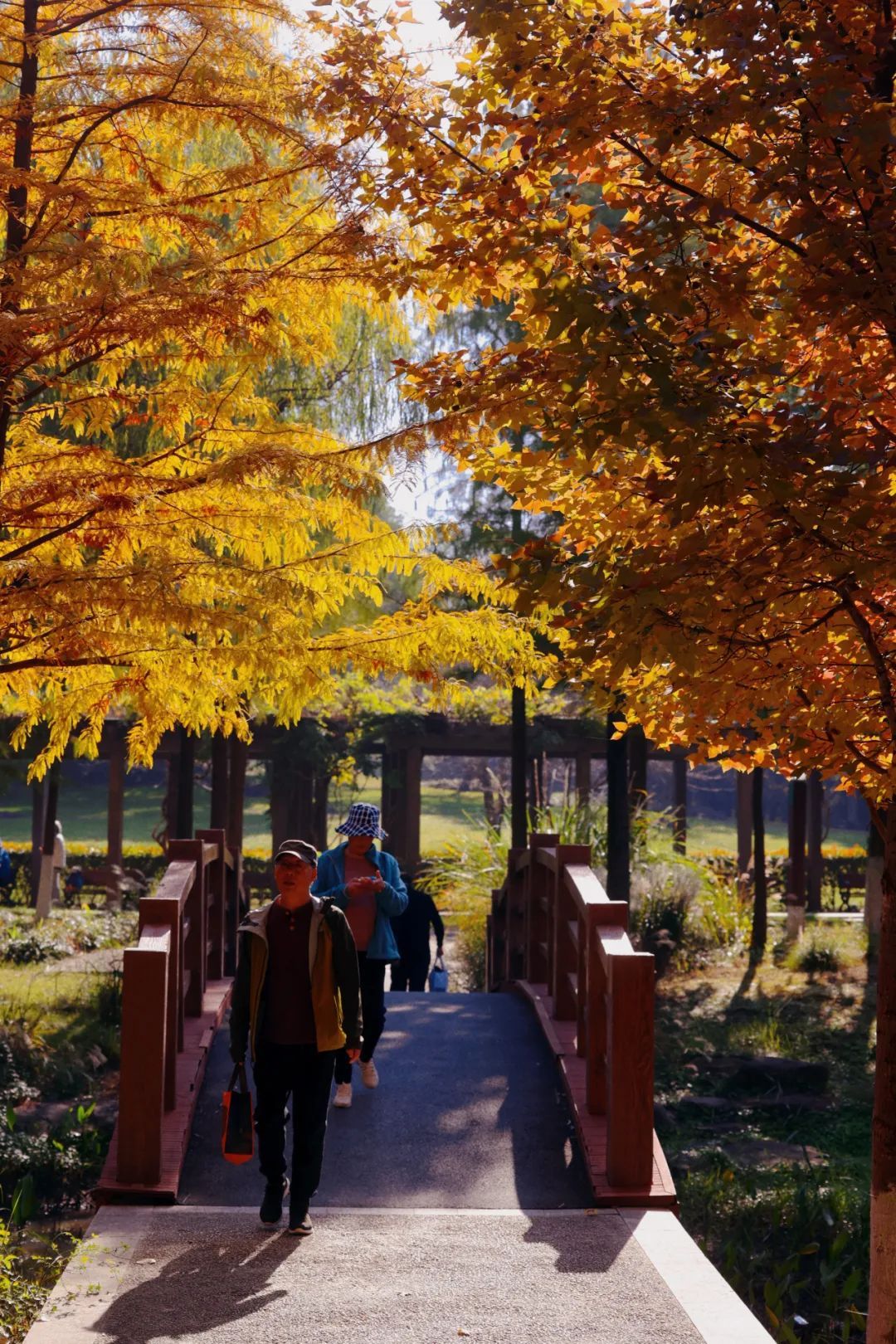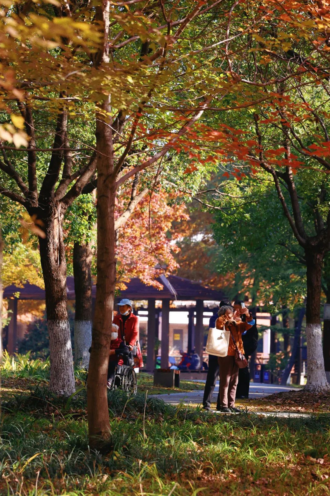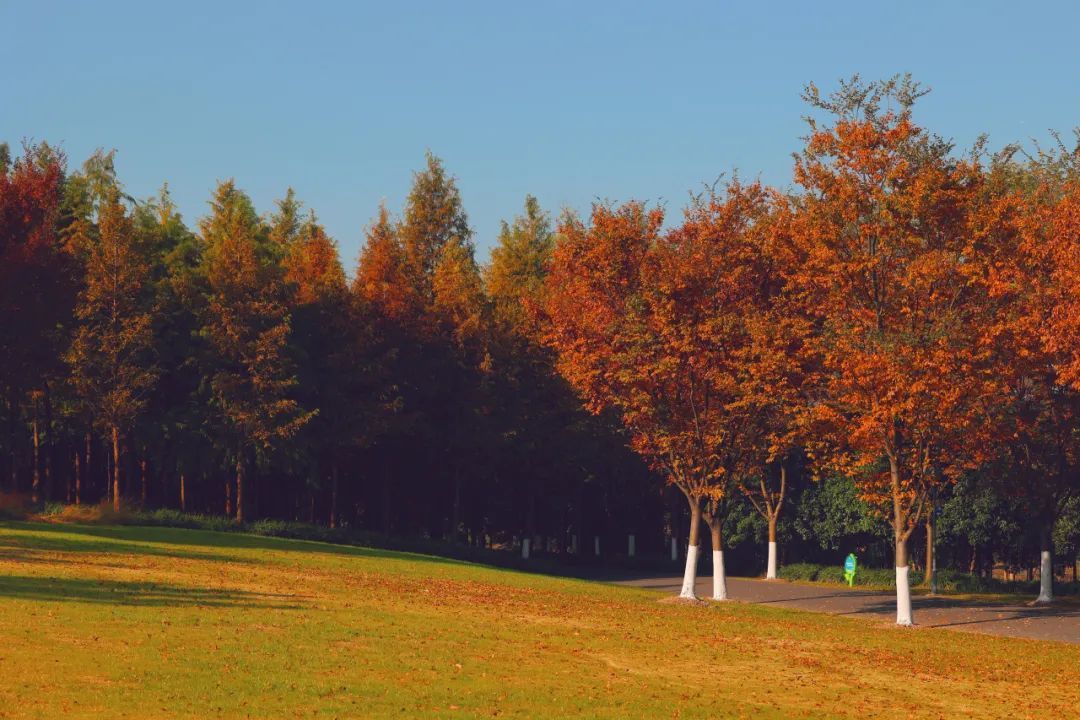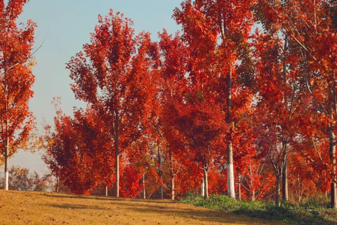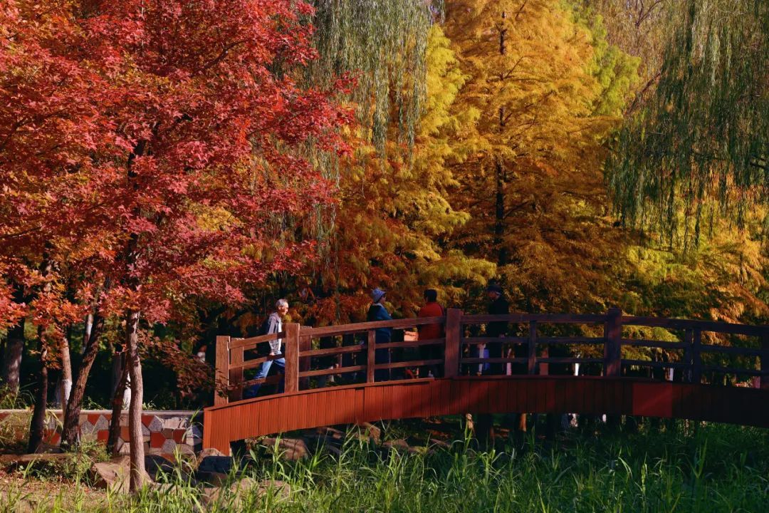 随着气温降幅明显,昼夜温差加大,对温度敏感的色叶树纷纷变色。目前顾村公园色叶树种变色率已达八成以上,进入最佳观赏期。