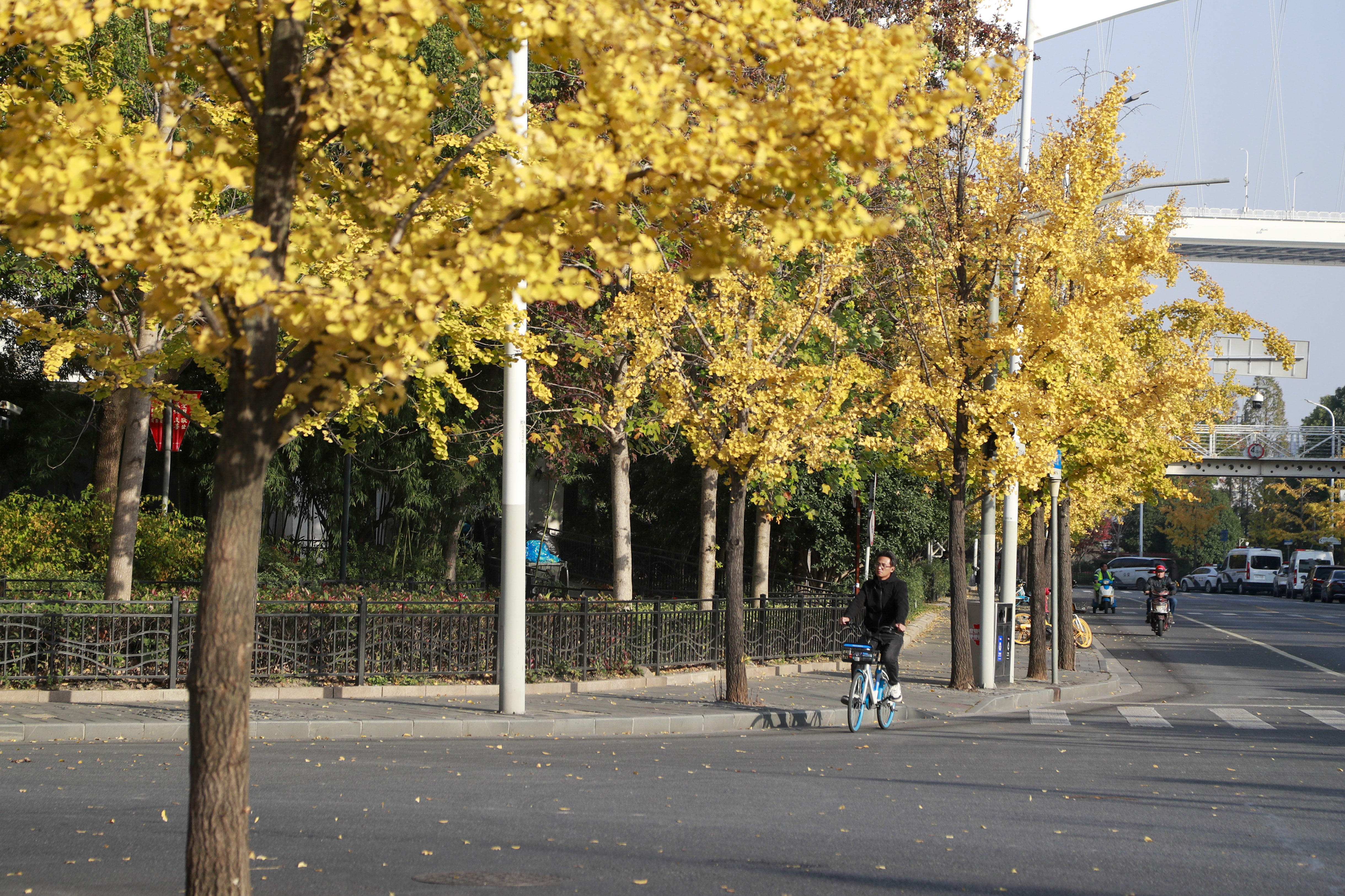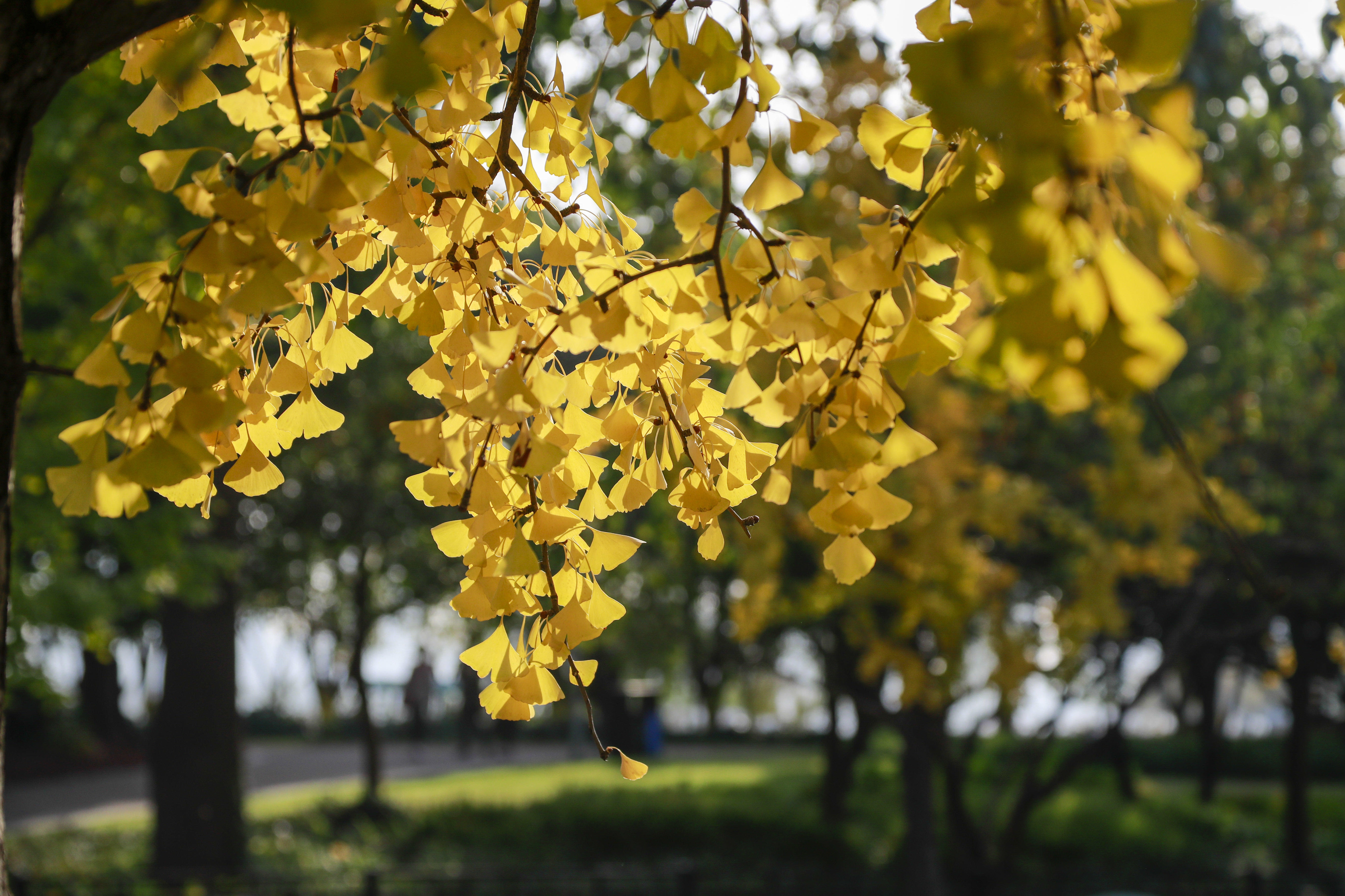 银杏叶的转黄和凋落都与天气气候条件密切相关,不同品种的银杏树也有着不同的变黄时间和周期。由于今年上海的气温相较往年同期略偏高,银杏叶变黄较晚,预计最佳观赏期将出现在本周后期,可持续10天左右。