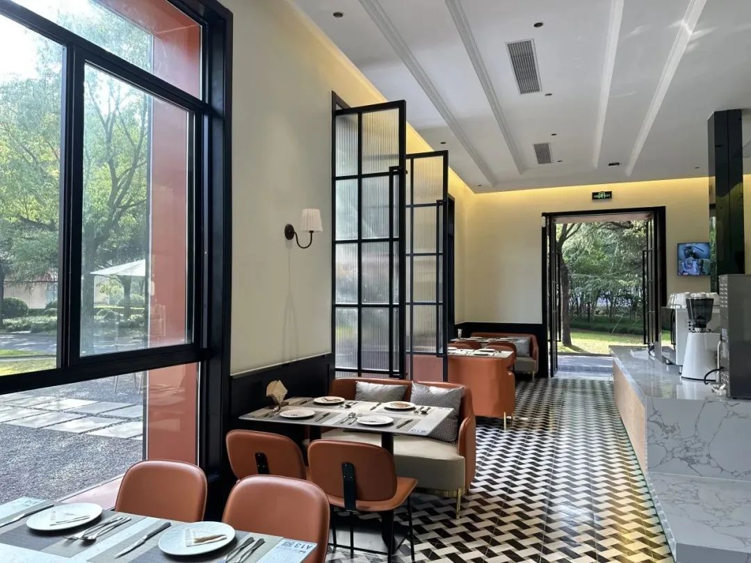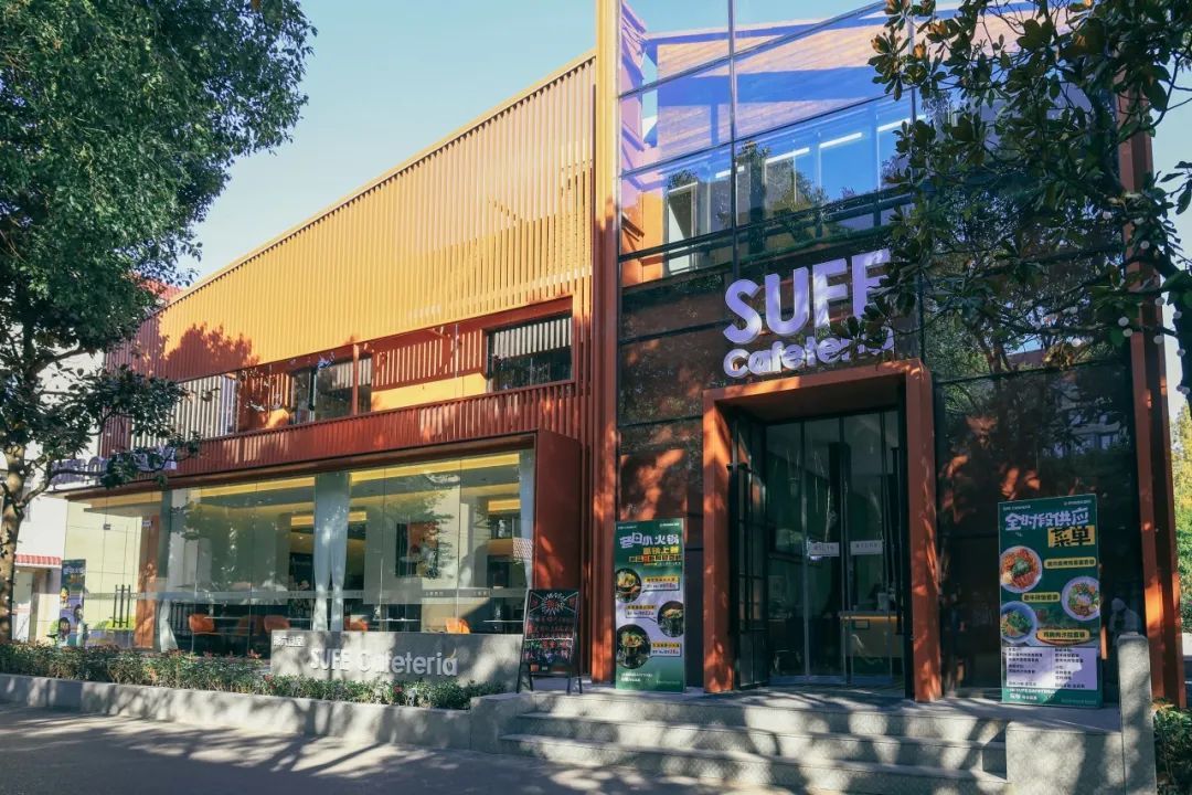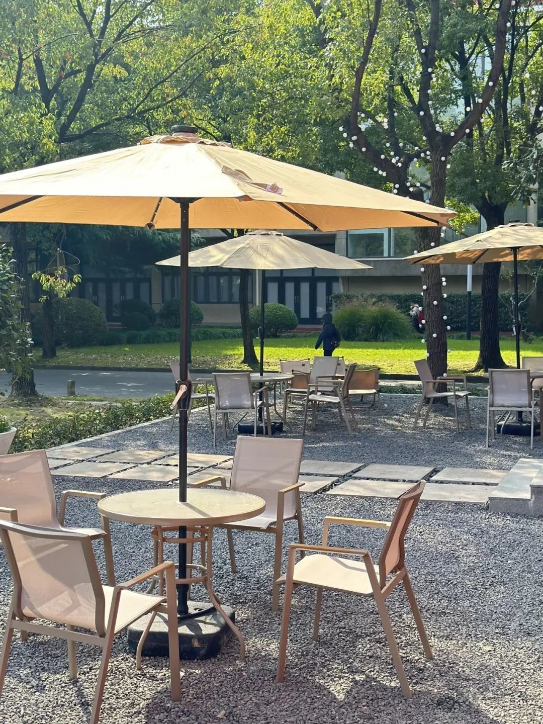 与此同时,老建筑也焕新了,在今年十月,国定路校区法学院楼东侧的缤纷谷成功改造为第六食堂。优雅的砖红色,青灰色的石子路,浅色的木质桌椅,成为校园里简洁而清新的一隅。
