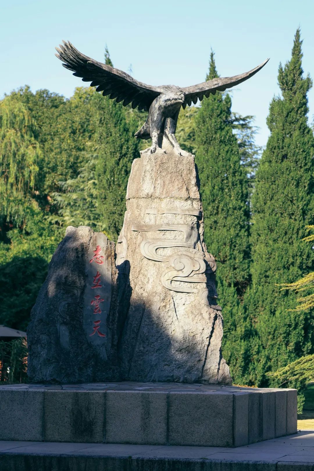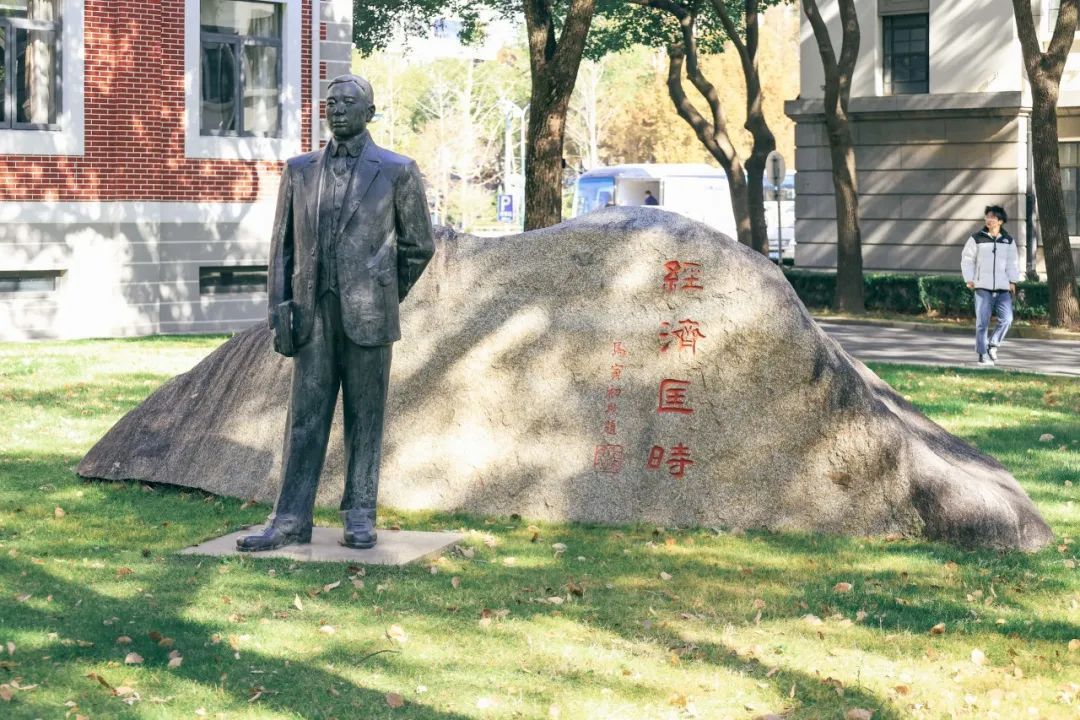 校园内,有诸多留下历史印记的标志,这件名为“御风”的雕塑见证了上财“五角场鹰院”的身份。老校门“国立上海商学院”琉璃瓦、孔雀蓝,由武东路100号走入上财的校园,映入眼帘的便是这座宏伟的仿古建筑。