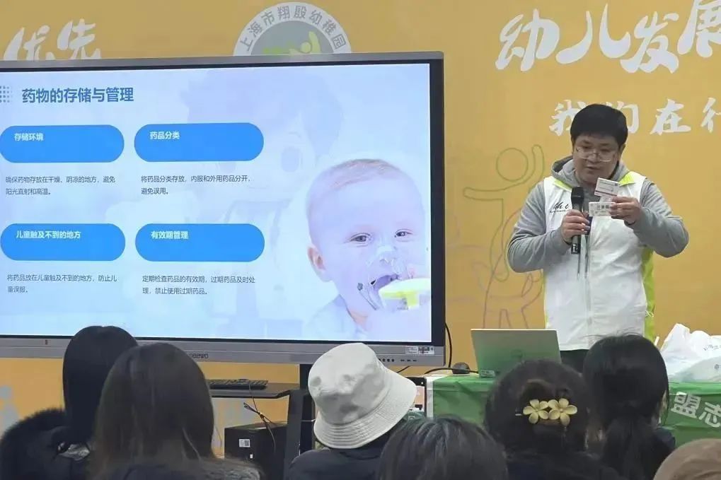 为保障儿童安全、有效、合理地使用药品,提高安全用药意识,近日,来自新华医院的4名药师组成志愿者团队走进翔殷幼稚园,开展“娃娃用药”主题科普宣传活动。 家长们首先观看了药品安全合作联盟公益宣传片,加深儿童安全用药意识。刘昕竹药师对儿童呼吸道感染常用的退热药、止咳药、抗生素的使用时机、药物选择、给药剂量、用药误区、注意事项等做了详细的介绍。关于药物的存储与管理,罗文弢药师结合实物进行了讲解,并展示了克拉霉素干混悬剂、布洛芬混悬滴剂等常用药物的正确使用方法。 家长们表示,平时确实忽略了很多细节,这次科普让他们重视并规避了可能会发生的问题。 马婧药师则根据孩子们的特点,用通俗易懂的语言,搭配生动活泼的案例,为孩子们讲解安全用药小知识。“可以用牛奶或饮料服药吗?”“可以躺着服药吗?”“可以随意服用大人的药物吗?”……在提问环节,大家积极举手发言,并表示回家要和爸爸妈妈一起整理小药。 本次活动旨在用科普宣传的方式推广儿童安全用药概念,帮助幼儿园家长及老师增长安全用药常识、提高安全用药意识,活动吸引了60余名家长及教师参与。 编辑:文茜婷 资料:新华医院 *转载请注明来自上海杨浦官方微信