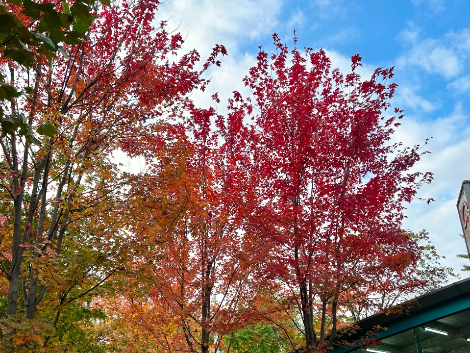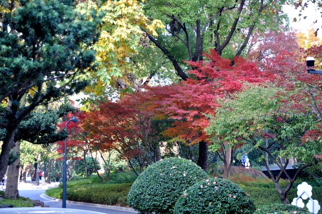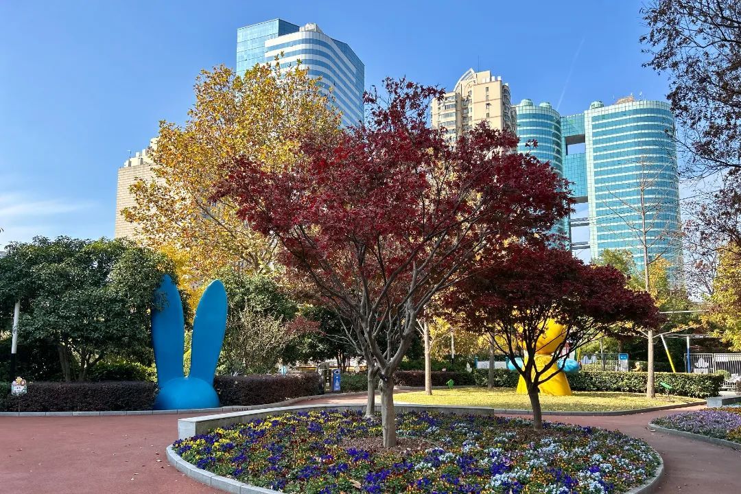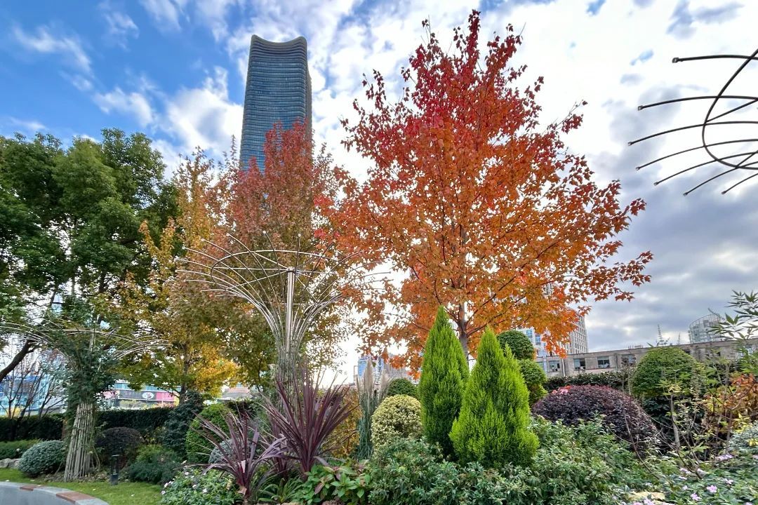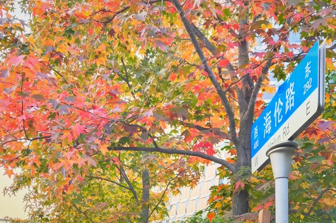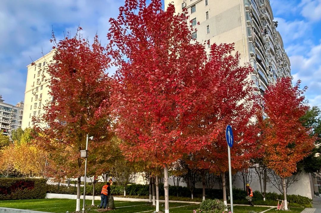 街边绿地内,也能发现红花槭的倩影,街边那一抹抹红,描绘出一幅幅温暖动人的画面。