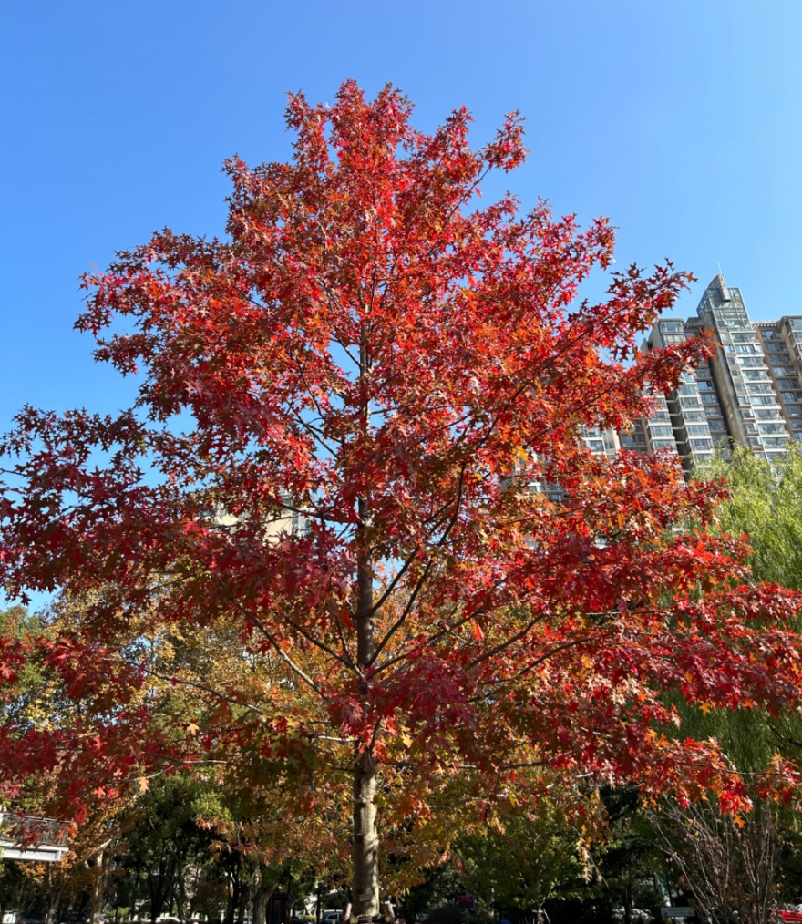 红花槭又称“美国红枫”,入秋后,树叶向亮红色渐变,极为绚丽。