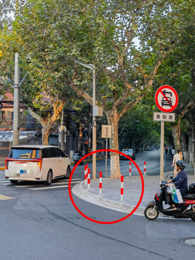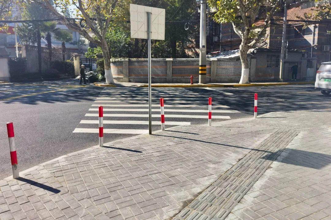 新铺设盲道及无障碍坡道,并将无障碍坡道连接到溧阳路人行横道线。通过增加人性化设施,彰显城市温度。