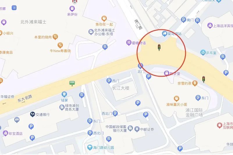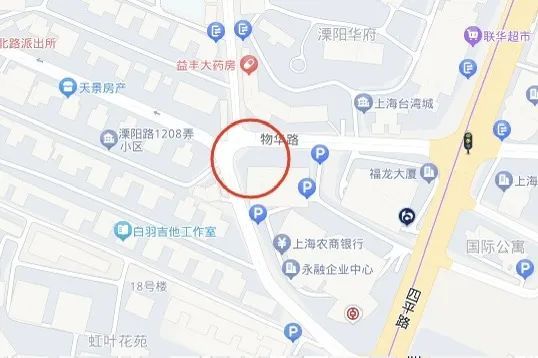 ▲改造前,溧阳路物华路路口有一块三角状凸出路岛