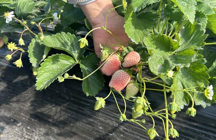 9月时栽下的草莓苗已经茁壮成长、开花结果,关玲给记者算了一笔账,以“紫金香雪”为例,紫金香雪产量高,“一株苗上至少结3茬果”,亩产至少能达到3000斤,按平均售价来算,一亩地产值能达到4万5千元。”物以稀为贵,“紫金香雪”这样的白草莓符合消费者尝鲜的心理,预计在春节前第二茬果正巧能上架,收购价格还有上涨空间。