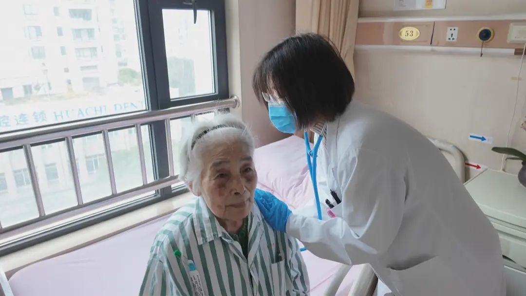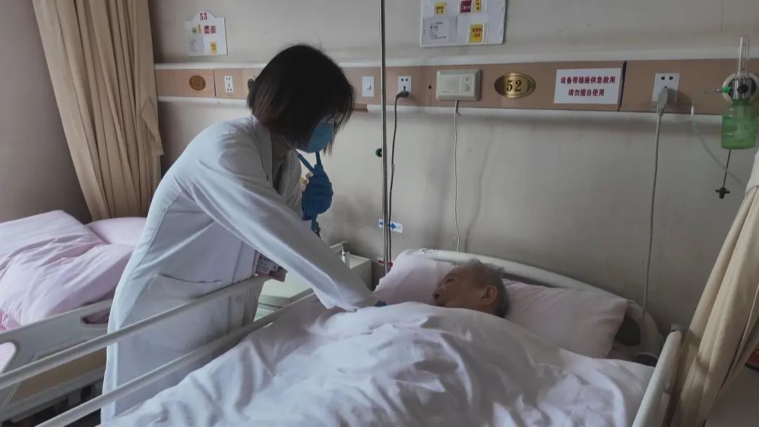 在黄浦区老年护理医院的病房内,医生正在进行查房,检查每个老人是否有咳嗽、发烧或胃口不佳等情况,近期呼吸道疾病高发,对于高危的老人来说,越早发现就能够更好地控制病情发展,一旦患者出现重症或是病情快速发展的情况,还可以启动绿色转诊机制,第一时间将老人转到上级医院进行治疗。