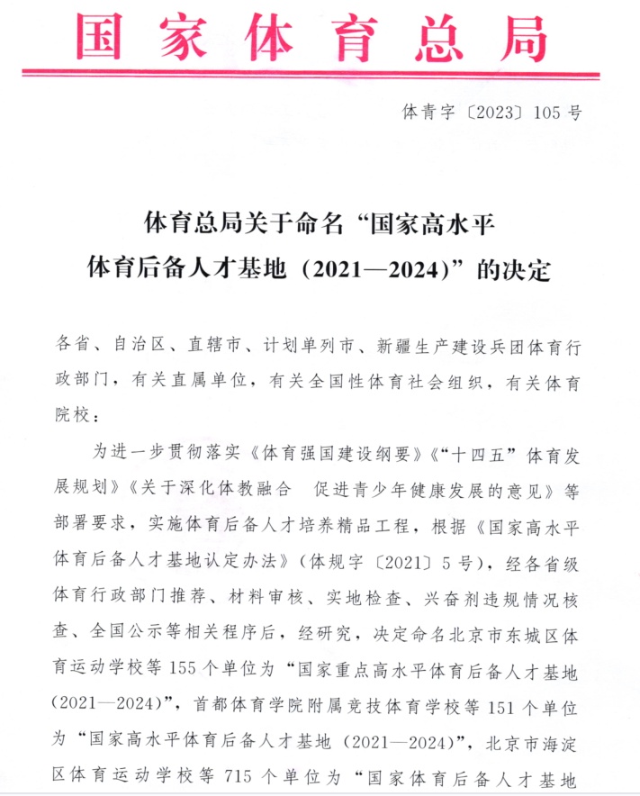 近日,记者从日照市体育局获悉,日照市体育运动学校被国家体育总局评为“国家重点高水平体育后备人才基地(2021—2024)”。