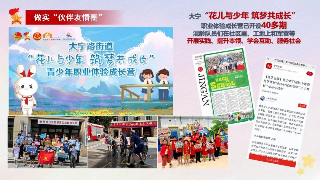 做实“伙伴友情圈”,开设40多期“花儿与少年 筑梦共成长”职业体验成长营,队员们在社区、工地等开展实践、提升本领、学会互助、服务社会。