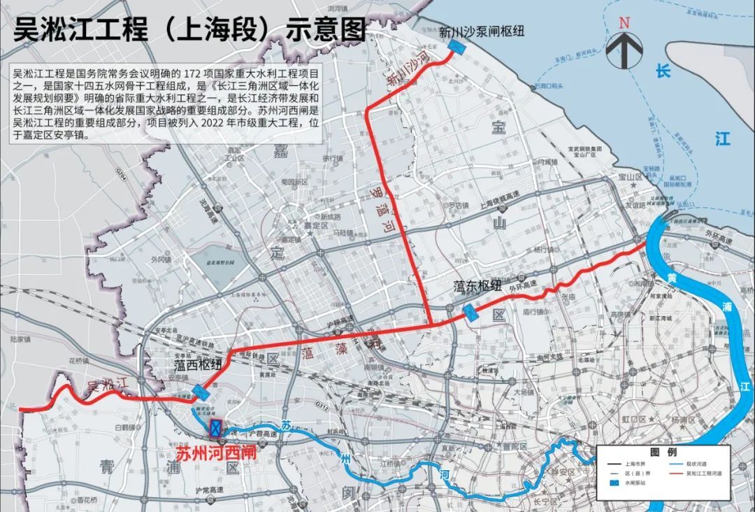 吴淞江工程是国务院明确的172项重大水利工程项目之一,也是《长江三角洲区域一体化发展规划纲要》《太湖流域防洪规划》确定的流域治理骨干工程和省际重大水利项目。