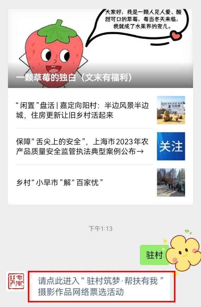 关注“上海三农”微信号,回复“驻村”参与投票。