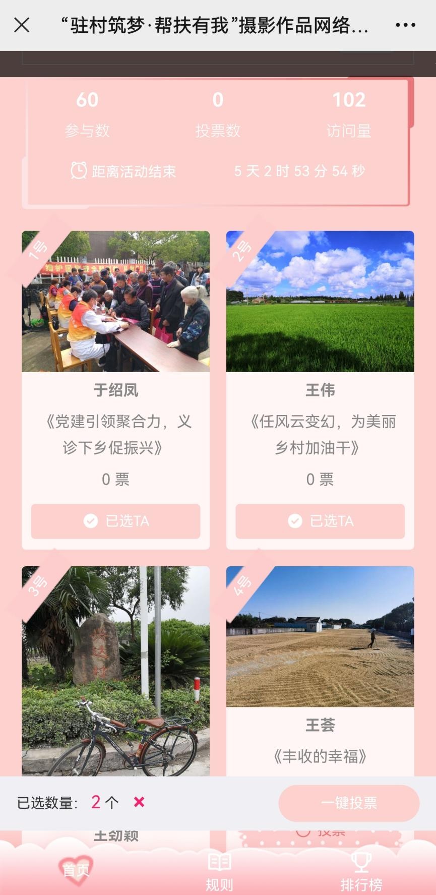 第二步:进入投票页面后,勾选你心仪的作品,点击“一键投票”即可。