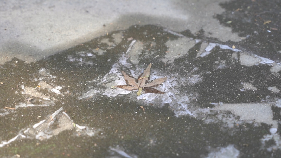 今天一早,阳光露脸,但寒风阵阵,气温持续低迷,不少路面出现了冰冻现象,部分河道也结起了薄薄的冰层。在枫泾古镇,来往游客被寒意裹挟,有的全副武装遮挡严实,有的在阳光下奔跑,驱逐寒意。
