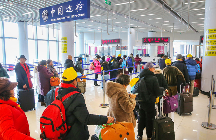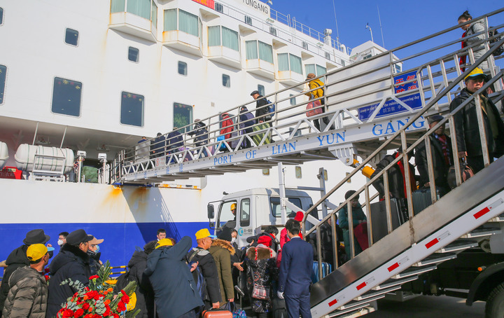 下午1点,来自江苏、浙江等地的620余名旅客陆续抵达,来到连云港港国际客运站,经过安检以后,在海关关员、出入境边防检查站民警的引导下,迅速办理通关手续,准备登船。此次“和谐云港”轮客运复航,适逢冬季元旦、春节出游高峰期,将为市民游客带来全新的跨国出游体验。