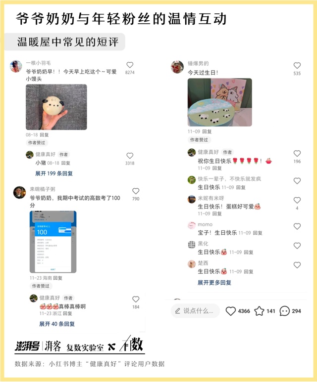 令温暖屋更为独特的一点,是爷爷奶奶积极的评论回复,这使得评论区成为了一场双向奔赴。