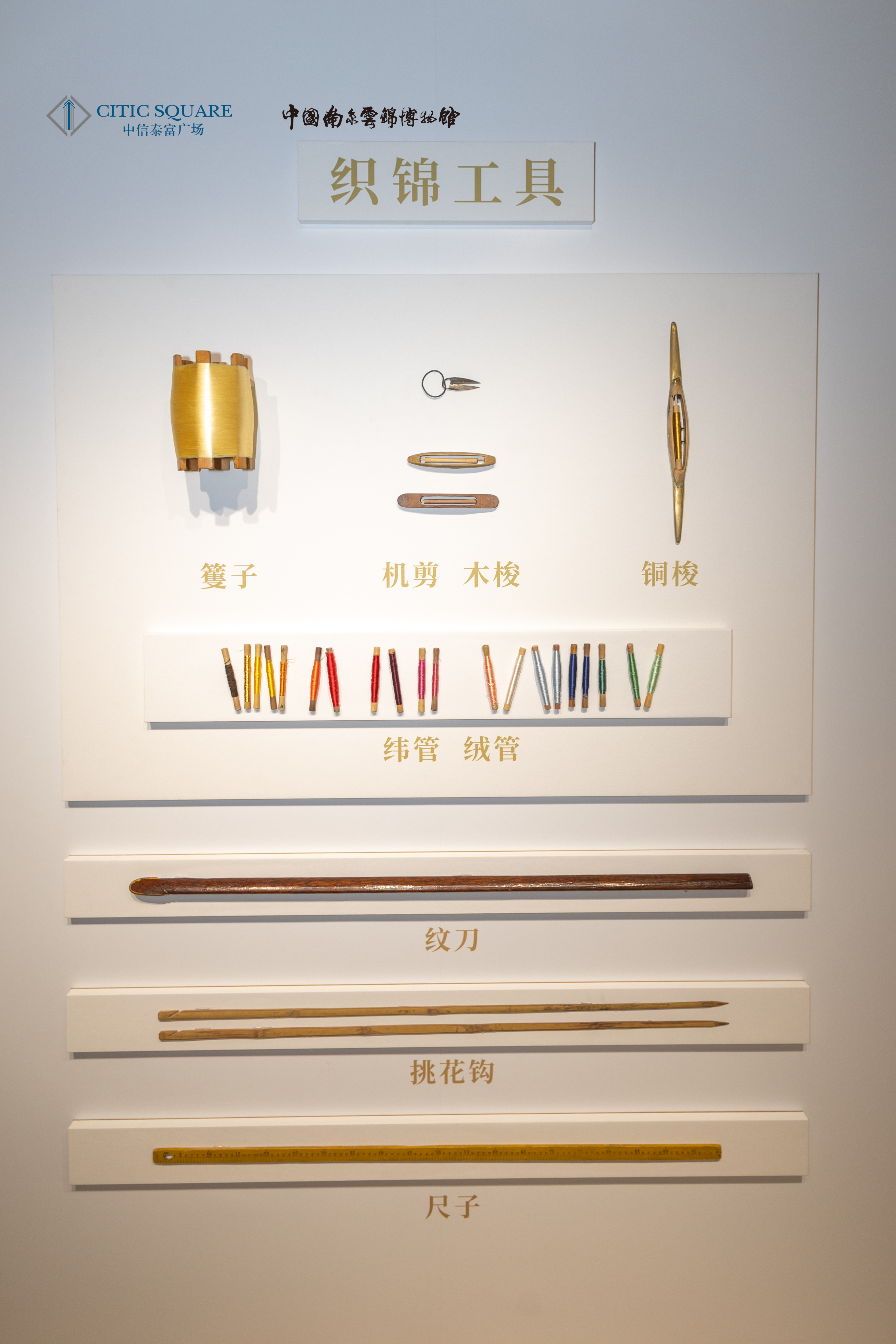 除了领取云锦“穿古入金“折页,“元先”非遗云锦现代艺术美学展也颇有看头。云锦溯源、匠心织就、天衣舞台、国立典藏四个展区将云锦的1600年历史、云锦织造工艺等娓娓道来。