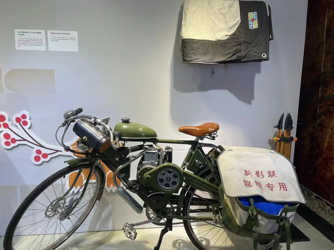 同时,一辆“上海永久28杠动力自行车”也是现场亮点之一。20世纪60年代,在电影拷贝资源有限的情况下,为了使几家影院能同时放映同一部影片,经电影制片商授权,各戏院将放映时间错开,由跑片员骑自行车或摩托车来回运送单卷拷贝。于是,“上海永久28杠动力自行车”也成为放映队“坐骑”之一,在此次展览上吸引了众多参观者拍照留影。
