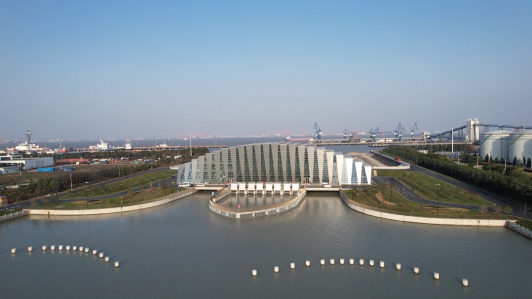 华建集团上海水利工程设计研究院有限公司总工程师田利勇是该项目设计负责人,他说,根据这个项目所处的地理位置特殊性——该地块位于内河港池与码头中间,提出了“泵站居中、闸放两侧”的总体布局方案。基于这样的方案又把所有供配电设备放在闸上,形成闸上设施的一体化的设计。既解决了整个泵闸枢纽运行对内外河、港池和码头的影响,同时也解决了管理区远供电困难的一些问题。