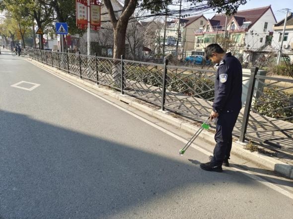 除了“姐妹志愿者服务队”,蒋庄还有一支联勤巡逻队。这支队伍不仅担负辖区内安全巡逻任务,也承担起了保洁工作,在巡逻过程中随时处理发现的垃圾和小广告,维持村域的环境卫生。