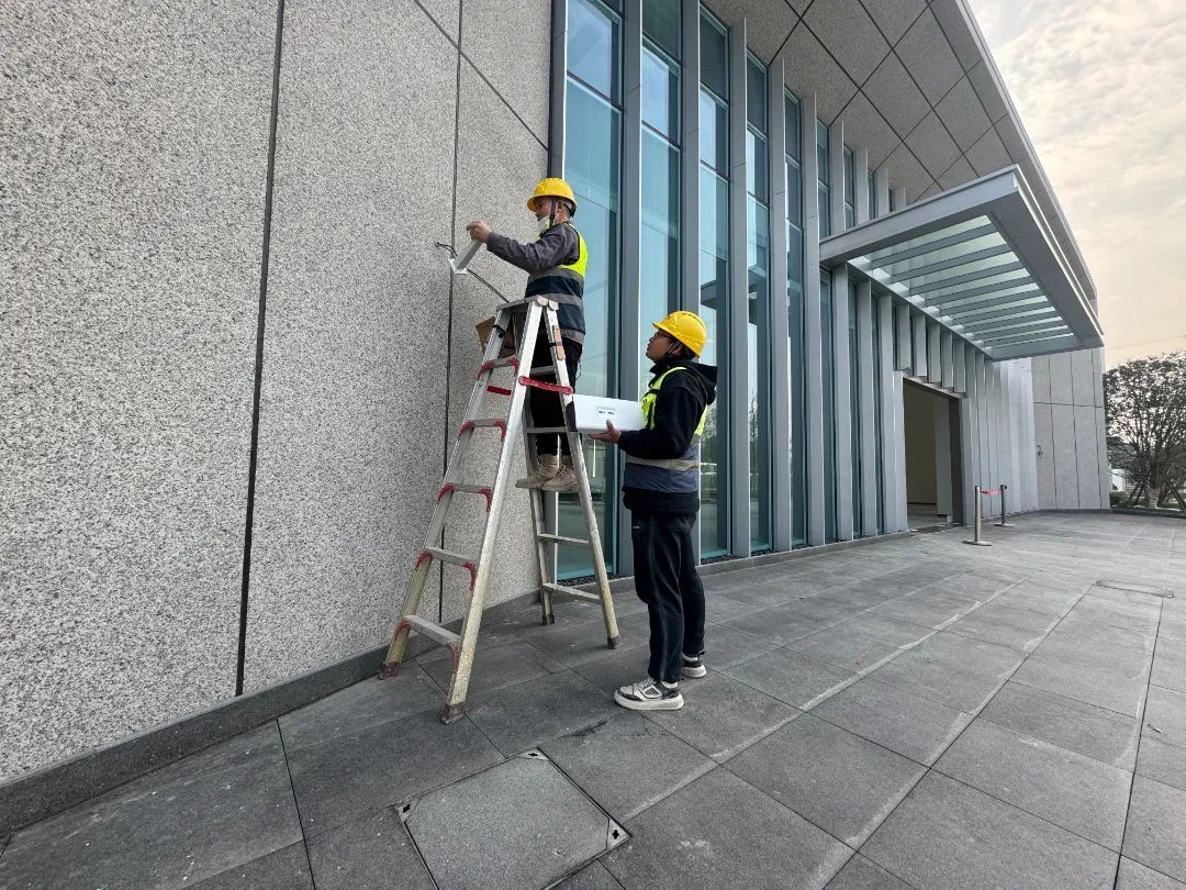 在青浦区公共卫生中心项目建设现场,主体大楼拔地而起,外立面幕墙施工与室内机电施工已经完成,工人们开展绿化养护、监控设施安装等建设收尾工作。为了抢抓进度,现场50余名建设者放弃元旦假期休息,干劲不减,节奏不变,冲刺加速,确保项目如期交付。